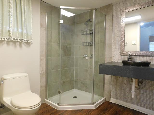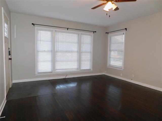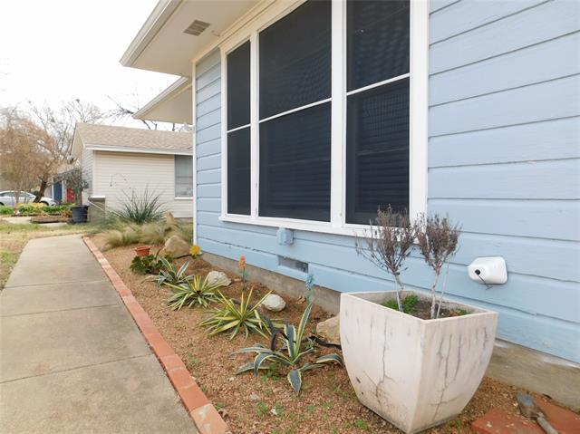 Eclectic three bedroom, two bath, one-story home centrally located in Denton. Original hard wood floors throughout the living area. Kitchen features stainless steel appliances. Small conjoining room between two bedrooms is currently acting as a large walk-in closet, but could be used as a small office. Refrigerator and washer & dryer included. Decorative landscaping in the front. Private backyard includes covered patio and a shed with power. Additional backyard space behind wooden privacy fence. Property centrally located in Denton, close to University Drive, UNT, TWU, Razor Ranch and the downtown Denton square.