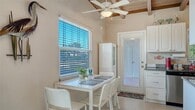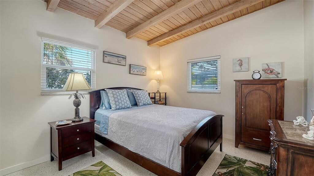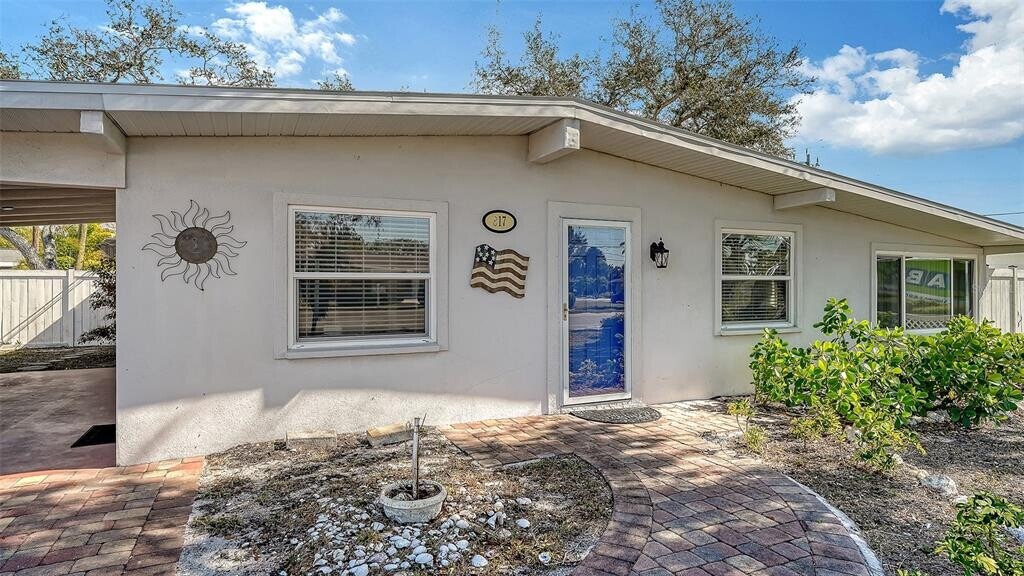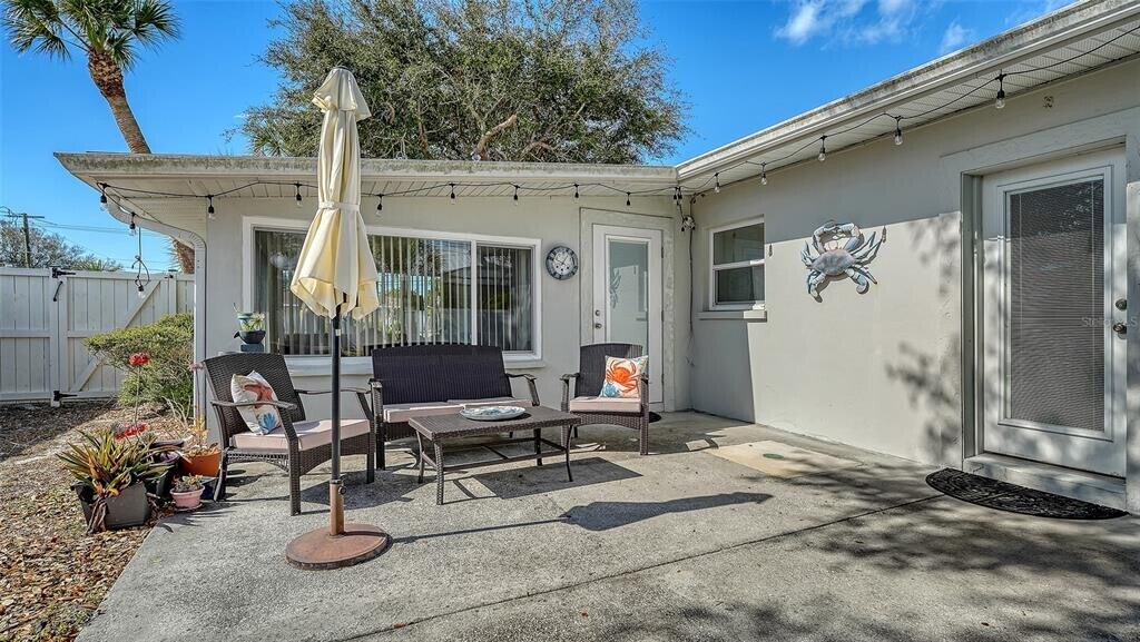 WELCOME TO OLD FLORIDA CHARM~ PRIVATE COTTAGE ON VENICE ISLAND. Nestled in the heart of the serene community of Golden Beach,this charming TURNKEY FURNISHED 2 bed/1 bath cottage has been lovingly renovated throughout. As you enter through the front door,you are met with an open spacious living area featuring beautiful wood high ceilings and original terrazzo floors. The living room has been extended to include a glass enclosed multi-functional space with pull-out sofa and a desk which can be used for an office or additional guest sleeping quarters. Enjoy morning coffee from your private patio with large fenced in yard offering privacy and gorgeous mature oak trees. The galley kitchen has stainless steel appliances and stone countertops. The primary bedroom features a king size bed and TV with private access to the patio. The second bedroom offers a queen size bed and TV. Washer and dryer in closet for added convenience. Paradise is right at your doorstep. This property offers deeded Beach access to Golden Beach which is less than a mile away. Nice carport offers easy access for entry to the cottage and unloading groceries. Keeps your car in the shade. Large fenced in yard can accommodate a small pet with owner approval. Located on Venice Island,1 mile from Sharky's Pier and Public Beach. Enjoy all downtown Venice has to offer. Fine Dining,shopping and beaches all within minutes of the cottage. This property CAN BE RENTED LONG OR SHORT TERM. Call for annual pricing. Come and live the Florida Lifestyle today! This little gem will not last long! MLS# A4680056