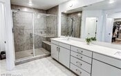 IMMACULATE/MOVE-IN READY 2 PRIMARY SUITES! WITH HUGE LOFT ON CUL-DE-SAC! Light and bright in every room! Beautiful designer upgrades in kitchen and baths. Kitchen boast lots of cabinets, island w breakfast bar, solid surface counters and stainless steel appliances. Spacious Family Room/Dining Room w vaulted ceiling has beautiful windows overlooking an oversized backyard. DOWNSTAIRS Bedroom could be used as a smaller Master with walk-in closet and shower-only bath w double sinks/vanities. Upstairs features a HUGE loft with vaulted ceilings, separate laundry room, 2nd Bedroom with full tub/shower bath and vaulted ceilings and a beautiful and very spacious primary Bedroom also with vaulted ceilings. primary Bath boasts a large walk-in tile shower,lots of cabinet storage, double sinks w solid surface counters and large walk-in closet. Pool sized Backyard is neat with covered patio, synthetic grass and a large stone area awaiting your creativity. Pavered front driveway and back patio