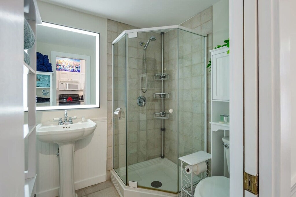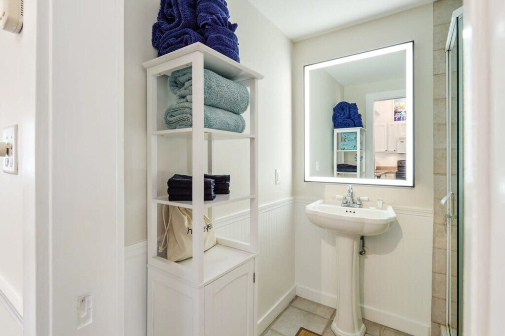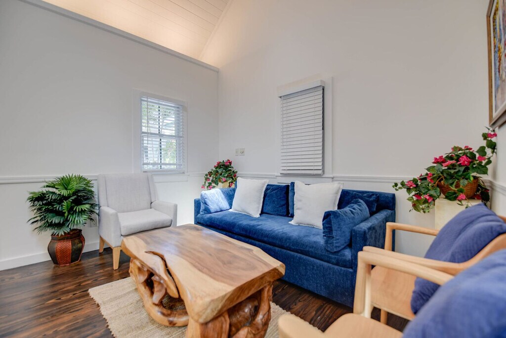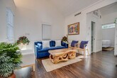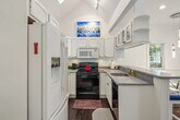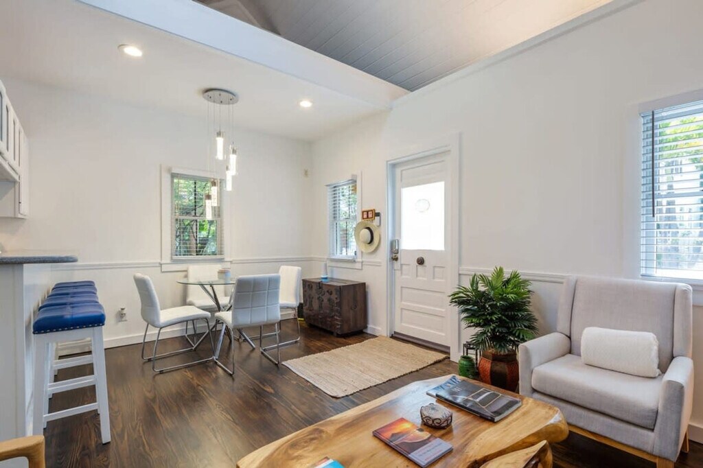 "Lil Bit" is a rare find in the historic Bahama Village neighborhood. This classic "conch" home is modern and renovated to have an elevated feel but retains the charm and character of old Key West. Perfect for a couple or visitors looking for a monthly stay, this home is equipped with everything you need. While it is a "Lil Bit," the space feels large, open, and fresh, and is a short walk to Fort Zachary Taylor State Park and Beach. This cozy historic home has space for four with a full bedroom, bathroom, kitchen, and living room space. The bedroom features a queen bed with built-in storage closets and a private patio entrance, while the living area includes a queen sleeper sofa. The bright white walls combined with the high vaulted ceilings create an oasis from the island energy just outside your door. As you enter the front door, the skylight greets you with natural light as you turn to find a plush couch and seating for four at the dining table. The kitchen provides plenty of cooking space for your meals at home and entertaining. The bathroom includes a large glass shower and illuminating mirror for easy and comfortable preparation for a night on the town. The front porch is perfect for spending time in the warm weather and enjoying quiet mornings. There is one off-street parking spot included with your stay, and there is also free street parking in the neighboring streets available on a first-come, first-serve basis. Imagine taking your morning walk or an evening cruise to some of the best restaurants, bars, attractions, and Fort Zachary Taylor for a beach or historic adventure. The family-friendly neighborhood boasts favorite local restaurants like Blue Heaven, Firefly, and Santiago's Bodega. Nearby attractions include the Ernest Hemingway Home, Lighthouse and Keeper's Quarters, and Krygier Gallery. The Historic Bahama Village district is colorful and vibrant, with local art galleries, live music, and stunning architectural moments just steps away. The home requires a 28-night minimum stay. It includes a private stackable washer and dryer, and mid-stay cleans are available upon request. For the purpose of creating a safe environment for guests, the entrance of the home has security cameras. Damages to the property or additional cleaning due to excessive mess are subject to charges. The property is not pet-friendly. [SI]