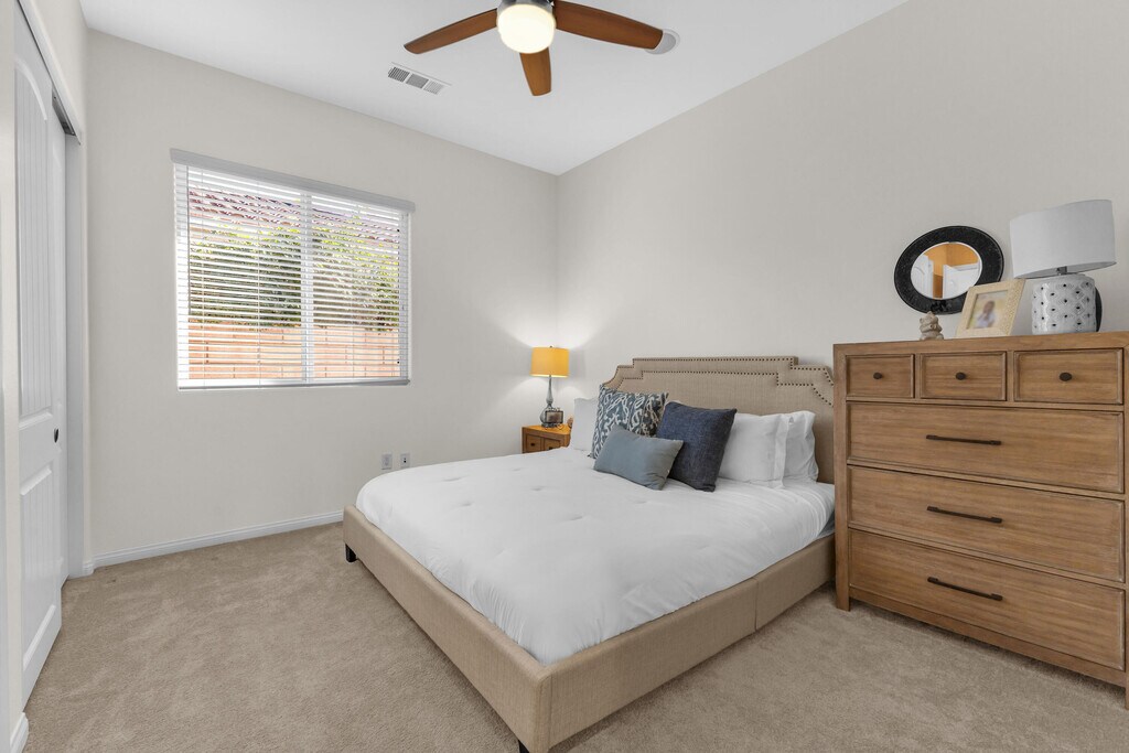 LEASE AVAILABLE APRIL ONLY ONE-MONTH RENTAL Don't miss this rare opportunity to lease a beautiful 5-bedroom,4.5-bath home in the gated community of Rancho Santana for the month of April only. This spacious,light-filled residence features an open floor plan,a chef's kitchen with stainless steel appliances and granite countertops,and seamless indoor-outdoor living. The primary suite offers a relaxing,spa-like retreat,while the attached private-entry casita provides ideal accommodations for guests. A flexible bonus room can be used as an office,media room,gym,or additional sleeping area. Step outside to a resort-style backyard with a sparkling pool,spa,tranquil water features,built-in BBQ,fire pit,and multiple seating areasperfect for enjoying the best of desert living during your April stay. Located minutes from world-class golf,hiking,dining,shopping,and Old Town La Quinta,Rancho Santana also offers walking paths,greenbelts,bocce ball,putting greens,a playground,and a community park. Secure this exceptional home for April only before it's gone.