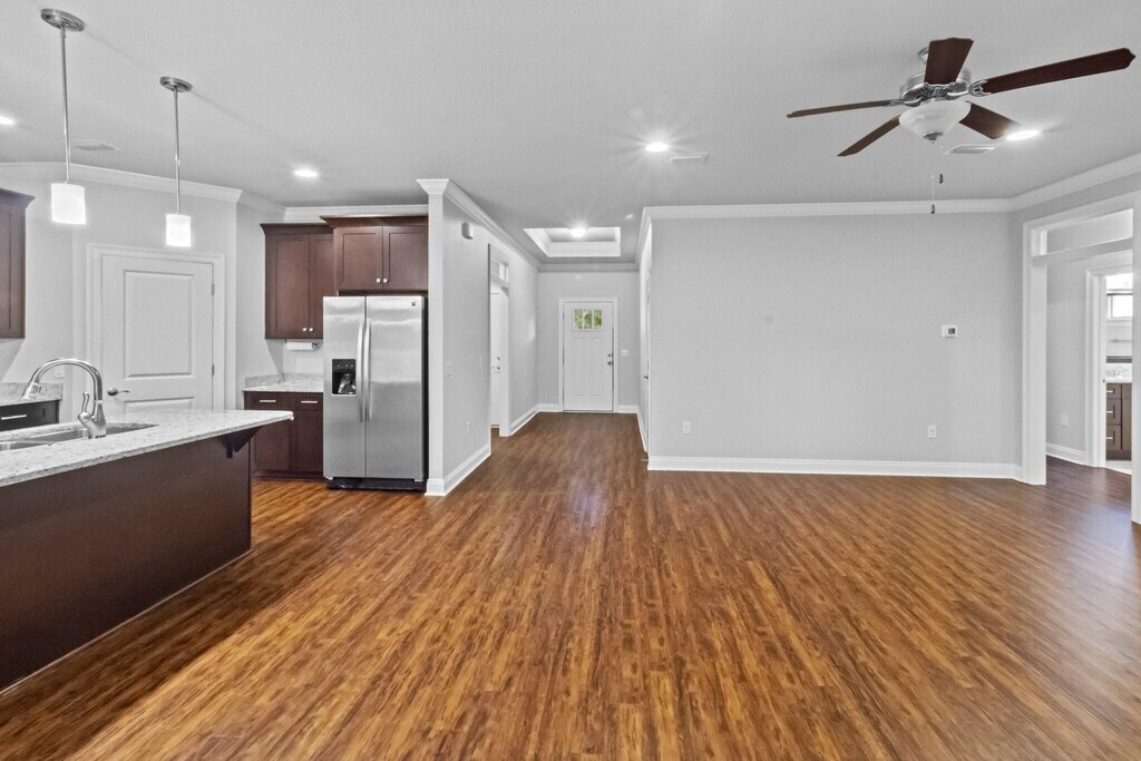 Exquisite 4 Bed/2 Bath Ramsey & Walker Craftsman Home on 1/2 acre lot! No HOA! Covered front porch w/formal entryway boasts tray ceiling & crown molding. True Open concept: Great Room & Kitchen feature high quality wood laminate flooring w/oversized custom cabinetry, corner pantry, Granite countertops, Stainless Appliance's & Massive Center Island! Large Breakfast nook w/French door to Massive 25x15 covered back porch! Expansive Master Suite w/bathroom that will truly spoil you: Dual vanity with Granite Counter, undermount sinks, framed mirrors, Huge walk in closet, & tile walk in shower w/ Bench, Pebblestone floor & Frameless Glass Door! Transom windows over doors. Washer and Dryer included but not warranted. Privacy fenced backyard with firepit! Pets will be considered w/owner approval.