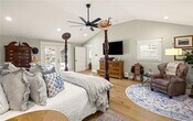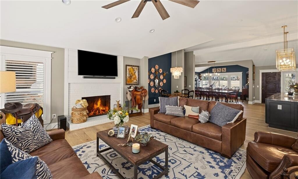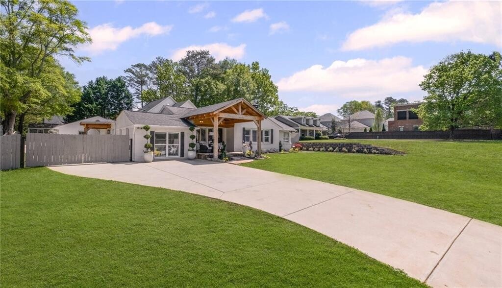 Luxury residence available,perfect for corporate or personal lease. Walk to restaurants,spas,located in the heart of vibrant Downtown Woodstock! Exceptional for entertaining,with an added bonus of a three bedroom GUEST HOUSE or extended family residence,also charming and move-in ready. 8175 Main Street is a premier location,directly across from prestigious Adair Park,with its restaurants,shops and luxury flats. This dual-living property,perfect for multi-generational living,business,entertaining,or extended stay guests. The primary residence,originally an historic home constructed in 1948,was masterfully reimagined by owner/designer and her team of architects in 2022 into a stunning residence which retains some of the original timeless charm and character,blended with modern luxury and cutting-edge upgrades. This property was uniquely curated to combine CHARM,LUXURY,CONVENIENCE,OUTDOOR LIVING and ENTERTAINING as its key components. The home boasts a chef's dream kitchen anchored by a breathtaking 12 foot island adorned with a gorgeous Brazilian Quartz,also featured in the backsplash and wet bar in the living area. Entertain effortlessly with a spacious oversized butler pantry,indoor wet bar,and flowing open floor plan. The living area off kitchen is centered around a cozy fire place and has three sets of french doors leading to the show-stopping outdoor oasis poolside. The custom designed pool features a tanning ledge and a unique swim ledge that curves along the water's edge. Outdoor living takes center stage with an outdoor covered kitchen featuring a smoker,oversized gas grill,Blackstone griddle,gourmet pizza oven,dishwasher,two beverage refrigerators and an ice machine,all surrounding a large entertainment area with a cozy outdoor fireplace. There is also a "DJ Balcony" perched above the entertaining space,ready for the party! The main home has wide corridors leading to each of the three bedrooms,perfectly positioned each with its own 'wing" for peace and privacy. A beautifully appointed guest house is located directly behind the poolside oasis,featuring THREE private bedrooms,one on the main level and two on the secondary level,a split bedroom plan for privacy. The main level features an expansive 6-car garage,which can also be used as indoor event space,an EV charging station,a set up for a second laundry,a dog shower,a private sitting porch,a custom putting green,and a large detached tool/equipment shed. The second story comprises an open floorplan,kitchenette,dining area,living room,two bedrooms (one with a balcony overlooking pool with views of downtown,currently used as office space),a full bath and generous closet space throughout. Lovely landscaping,outdoor lighting,a large yard for PETS,a commercial grade security system with AV closet,and a charming front sitting porch overlooking downtown add to the charm and appeal of this special downtown property. Experience all the perks of downtown Woodstock living as you walk to restaurants,spas,shopping,the summer concerts in the park,and outdoor events. This extraordinary property is a rare find,thoughtfully designed for comfort,entertaining and luxurious everyday living in one of Woodstock's most desirable locations. Will negotiate lease terms subject to lease length; pets acceptable with some restrictions.