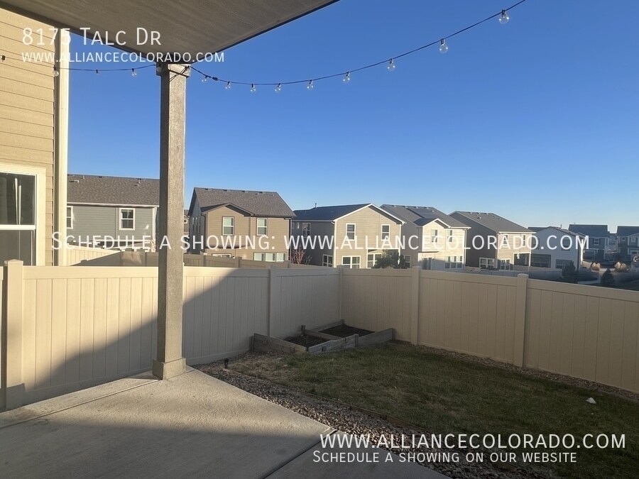 IMPORTANT: Schedule a showing on our website. All showings are scheduled online. www. alliancecolorado. com QUESTION ABOUT APPROVAL CRITERIA? Our complete approval criteria are posted on our website, please review it there. Beautiful two-story home near parks, schools, and with easy access to Marksheffel Road for faster commutes! The entryway leads you into the living room with large windows that bring in plenty of natural light. The kitchen features stainless steel appliances and an island with breakfast bar seating. A convenient half bath completes the main level. Upstairs, you'll find the primary bedroom with an attached bath and walk-in closet, along with two additional bedrooms, a shared full bath, a laundry room, and a versatile loft space. The backyard boasts a covered patio and a lawn, perfect for kids or pets to play, or for relaxing with a cup of coffee. • Built in 2021 • 2027 finished sq ft • 3 bdrm, 2.5 bath • Central Air Conditioning • Washer/dryer hook-ups • Fenced backyard with covered patio • 2-car attached garage ~Available Date - November 18, 2025 ~Rent $2350 - tenant pays all utilities; less trash ~Move-in Cost (due at lease signing) • Security Deposit (equal to 1 or 2 months' rent: credit dependent) OR ask us how to waive your security deposit! • First month's rent in full • First month's utilities in full (if applicable) • Lease Administration Fee: $79 (one-time, non-refundable) • Resident Benefits Package: $40.95 (monthly; no prorations allowed) • Pets: monthly fee (non-refundable, never prorated) and additional $300 refundable deposit (if applicable) ~$50 (non-refundable) application fee per adult – please review our approval criteria on our website before applying ~No smoking ~No marijuana growing ~Pets: • One (1) dog considered - must be 1+ year old • $300 additional deposit (refundable) • $35 monthly pet fee (non-refundable, never prorated) • One (1) 20-gal fish tank considered • No other pets considered, no exceptions Alliance Property Management, Inc, Managing Broker: Melissa Griffeth SCHEDULE A SHOWING ON OUR WEBSITE or TEXT with additional questions: seven one nine, three five five, eight six eight eight www . alliancecolorado . com (click “for rent”) Applicant has the right to provide Landlord with a Portable Tenant Screening Report (PTSR) that is not more than 30 days old, as defined in § 38-12-902(2.5), Colorado Revised Statutes; and 2) if Applicant provides Landlord with a PTSR, Landlord is prohibited from: a) charging Applicant a rental application fee; or b) charging Applicant a fee for Landlord to access or use the PTSR. Report must include: *Name *Contact information *Verification of employment and income *Last-known address *Rental, credit, and criminal background histories, in compliance with Colorado law Reports must meet the following criteria: *Completed within the last 30 days *Made directly available to the landlord by the consumer reporting agency or through a third-party website regularly engaged in the business of providing consumer reports, in compliance with all applicable consumer reporting laws *Provided to the landlord at no cost *A statement from the prospective tenant that there has not been any material change in the information provided in the report
