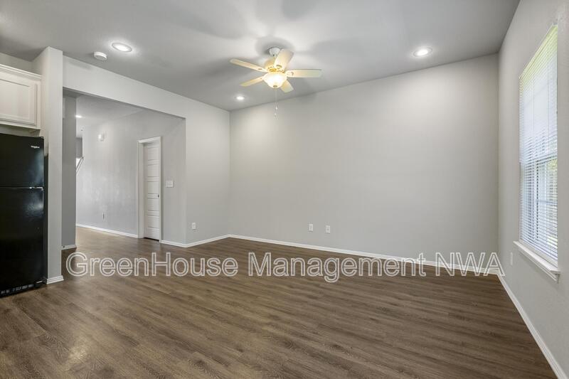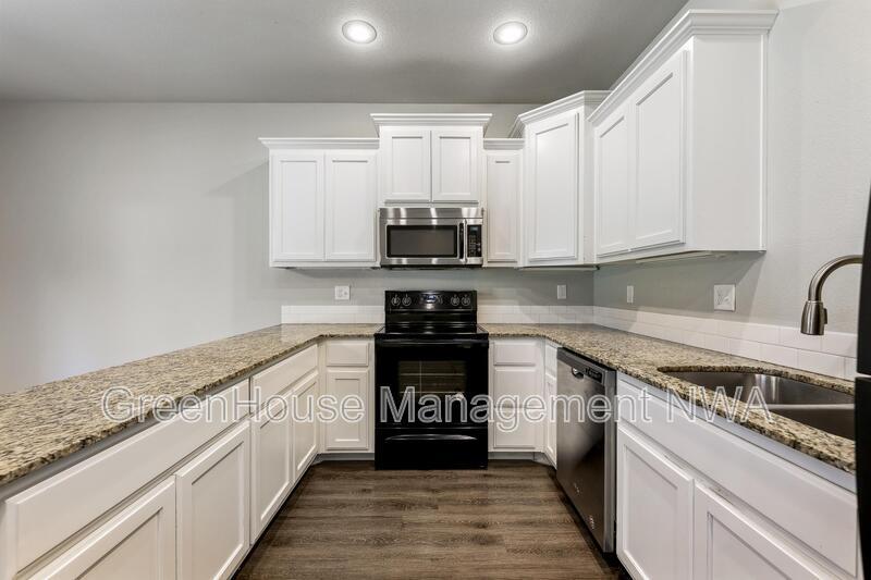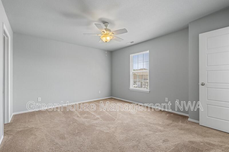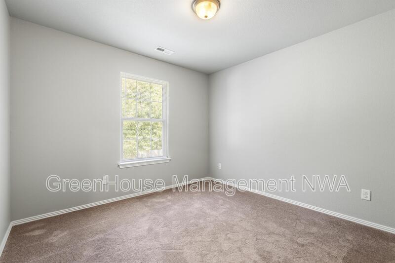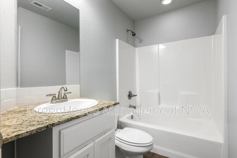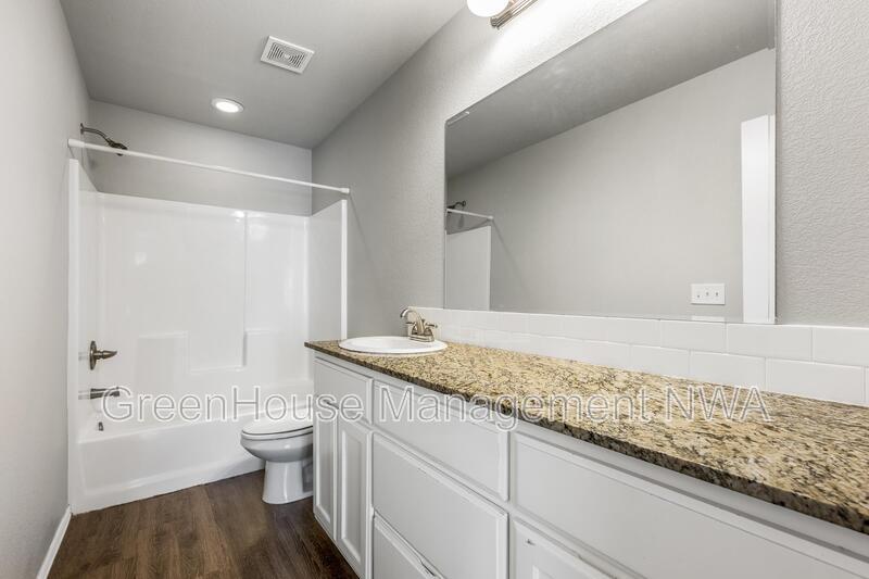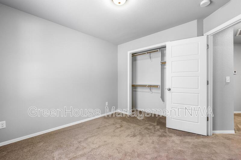 Spacious two-story duplex located in the Country Meadows subdivision of Gravette. This 3-bedroom, 2.5-bath home offers an open living and dining area, kitchen with granite countertops, and stainless steel appliances. Primary bedroom features an ensuite bathroom and walk-in closet. Laundry room is located upstairs near all bedrooms for convenience. Property includes an attached two-car garage and private driveway. Exterior features include a brick and vinyl siding combination with a concrete patio area and level backyard. Built in 2017, this home provides approximately 2,912 square feet of living space. Conveniently located near schools, parks, and major routes with easy access to the Bella Vista Bypass.