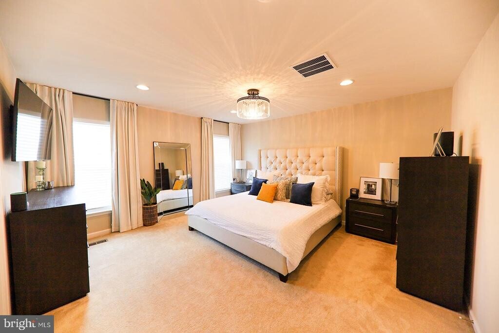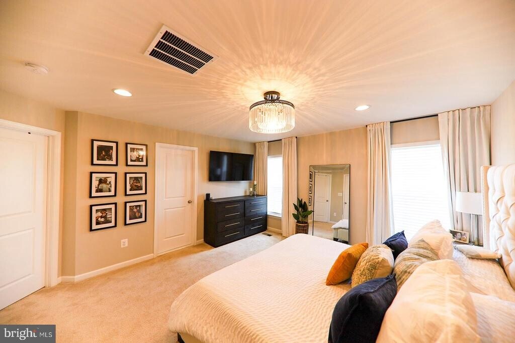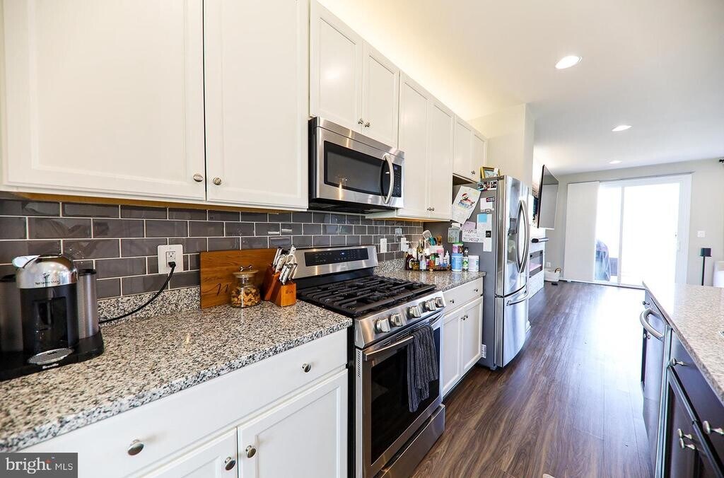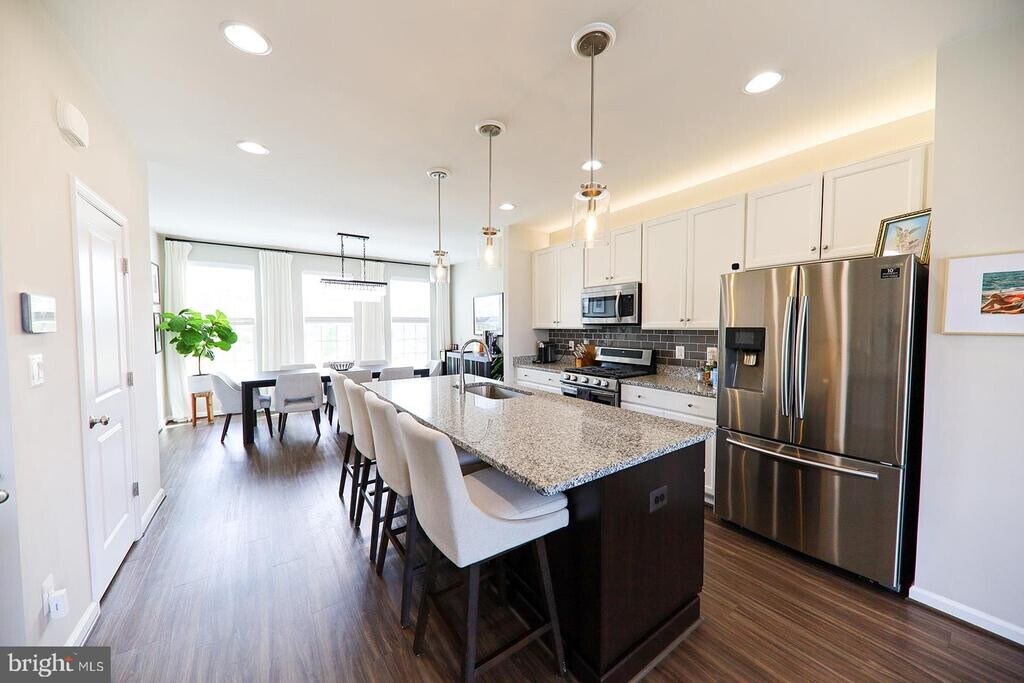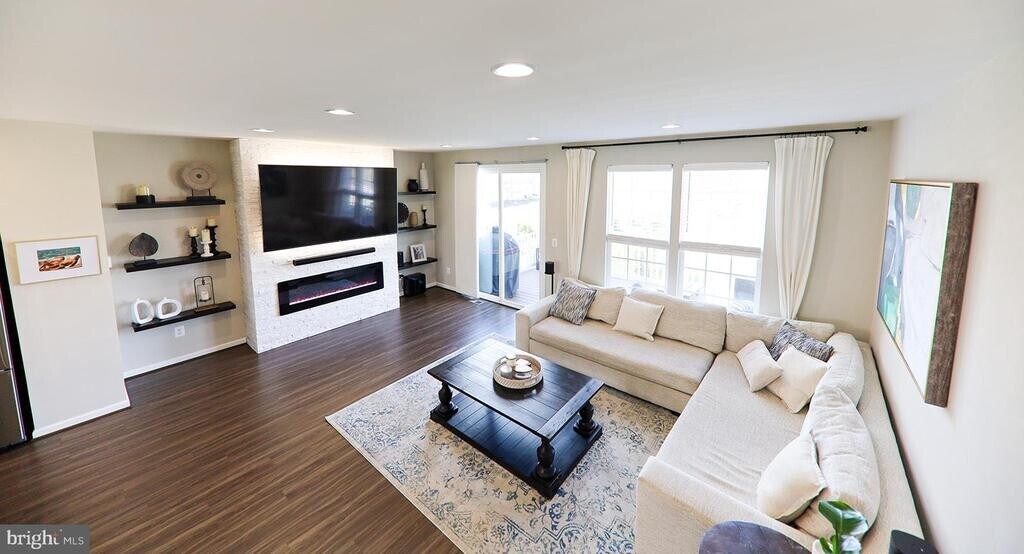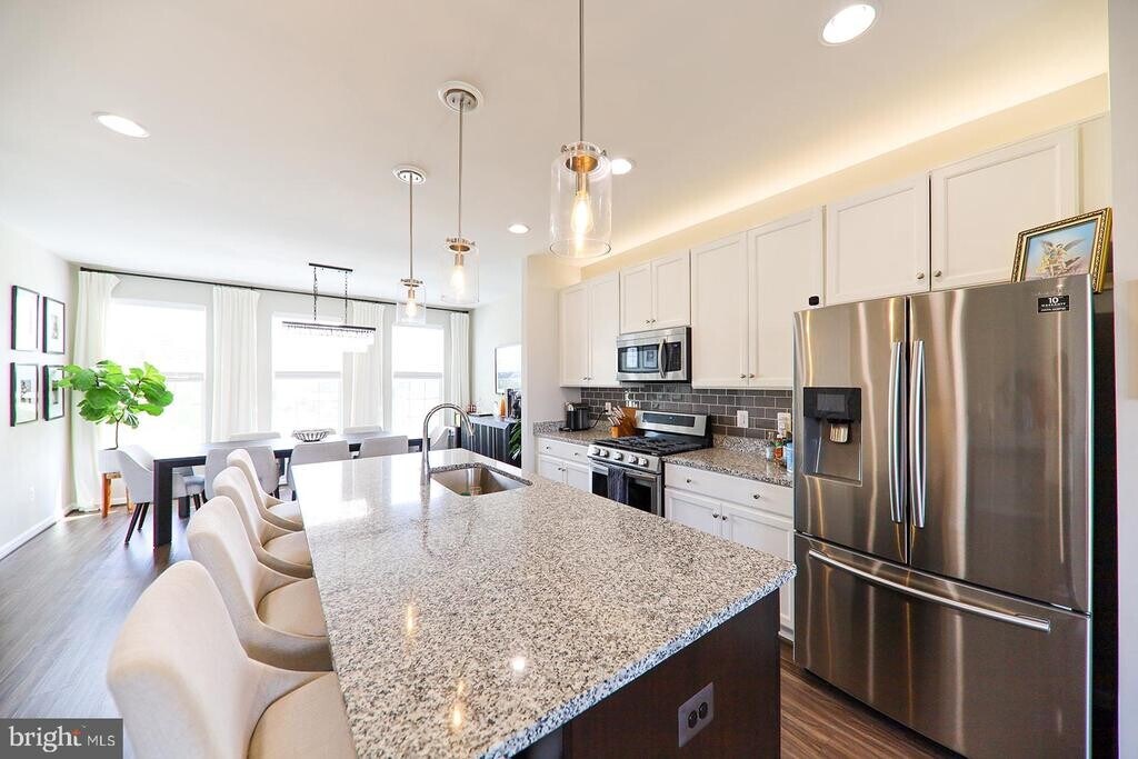 Bright and beautiful newer townhouse built in 2020, offering numerous upgrades and a thoughtfully designed layout! Enter on the main level, featuring a front-entry 2-car garage with epoxy flooring and built-in shelving. The spacious bonus/recreation room includes a full bath and opens to a fenced, manicured patio—perfect for relaxing or entertaining. Upstairs, enjoy a chef-inspired kitchen with a gas stove, stainless steel appliances, and a separate dining area. The open-concept family room features an electric fireplace, an 85-inch mounted flat-screen TV, and access to a large deck ideal for gatherings. The third floor showcases a luxurious primary suite with a spa-like bathroom, double-sink vanity, and glass walk-in shower. A generous walk-in closet provides ample storage for all seasons. Two additional bedrooms, a full bath, and a laundry room complete the upper level—one bedroom easily converts to a private home office. Located in the sought-after Richmond Station community, this home is close to shopping, restaurants, and fitness centers, and offers a dog-friendly environment with its own dog park. Please note: The home is rented unfurnished. Photos have been virtually staged for illustration purposes only. Schedule your showing today!