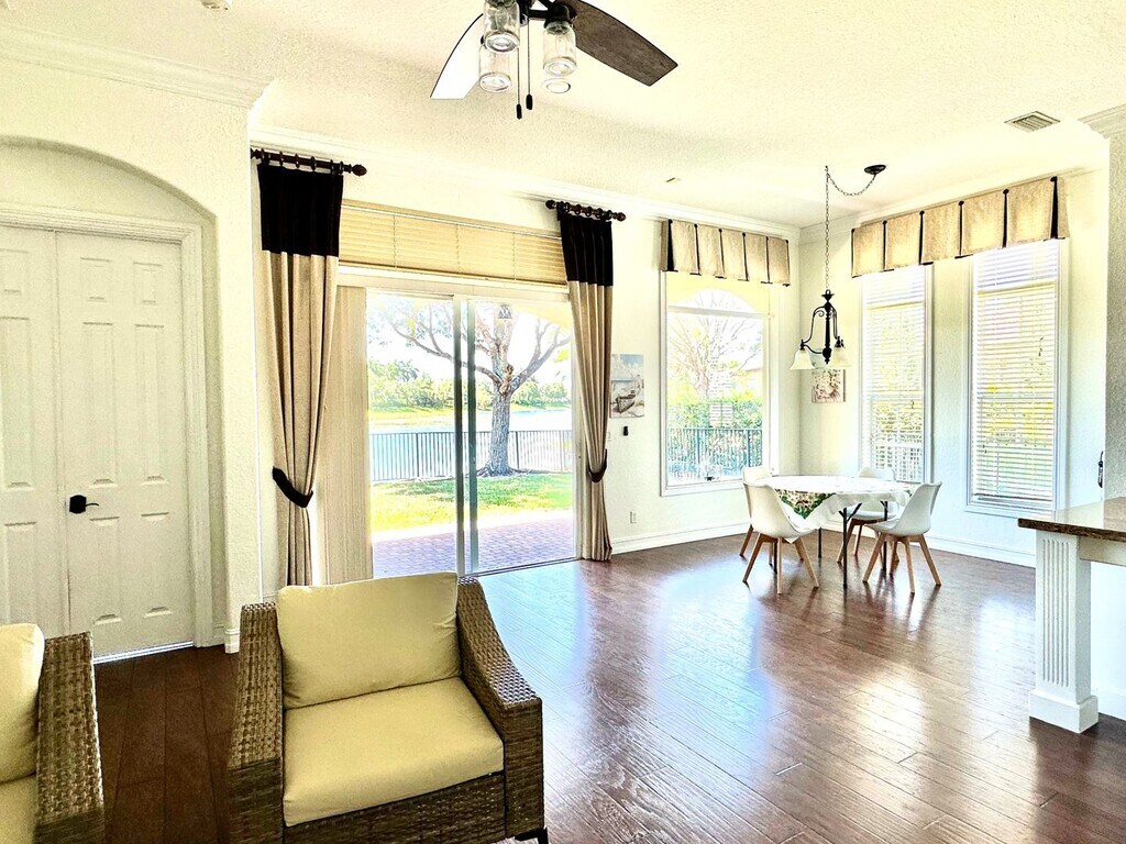 Live the Heron Bay Lifestyle Here in This Warm and Inviting 3 Beds 2 Baths Home w/ Endless Lake Views! Features Include a Fully Fenced Backyard w/ Plenty of Room For a Pool, Wood Flooring Throughout Main Living Areas, Freshly Painted Interior, Custom Draperies, Beautiful Kitchen w/ White Cabinets, Granite Countertops, and Tumbled Marble Backsplash, California Closet in Primary and One Bedroom, Jacuzzi Tub, Plantation Shutters, Brand New GE Dryer, Crown Molding, High Ceilings, Tons of Natural Light, Community Includes Resort Style Amenities w/ Two Clubhouses, Fitness Center, Splash Park, Playground, Tennis, Basketball Courts and So Much More, Parkland's A Rated Schools, Make This Home Yours Today!!