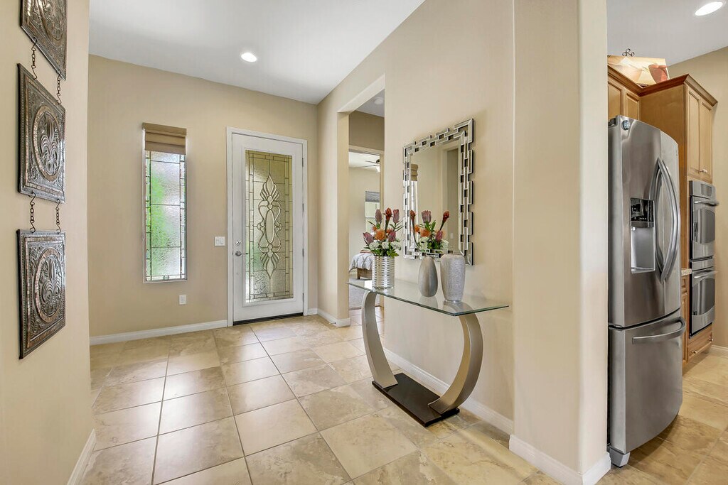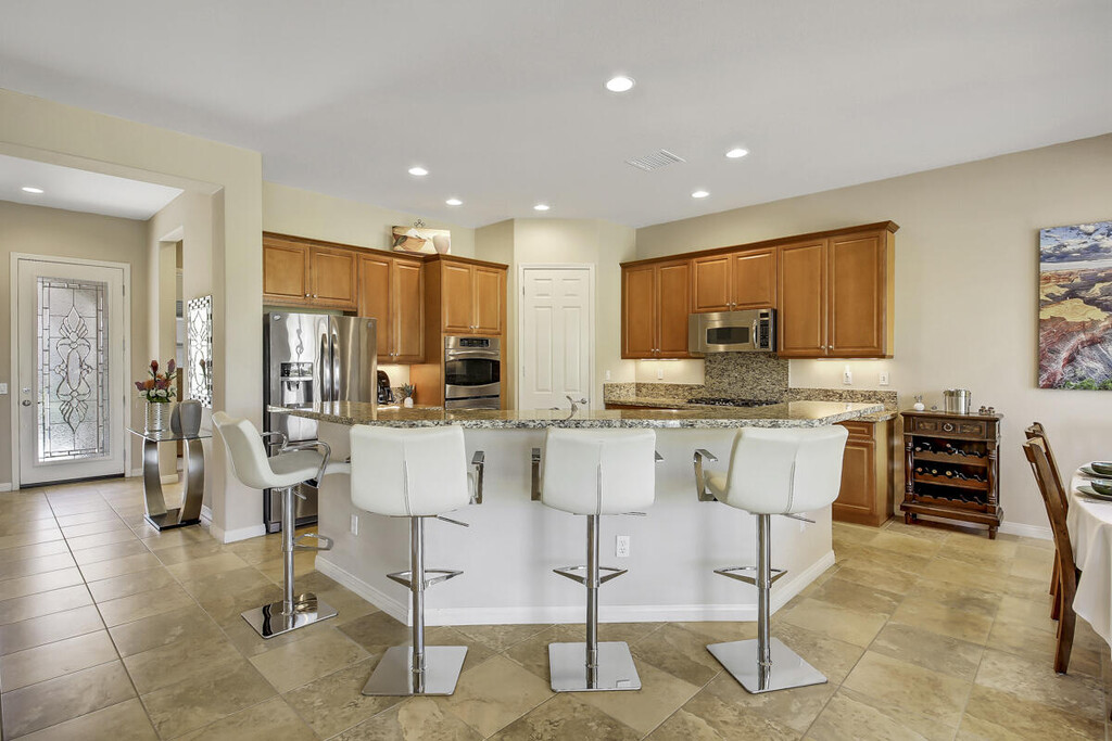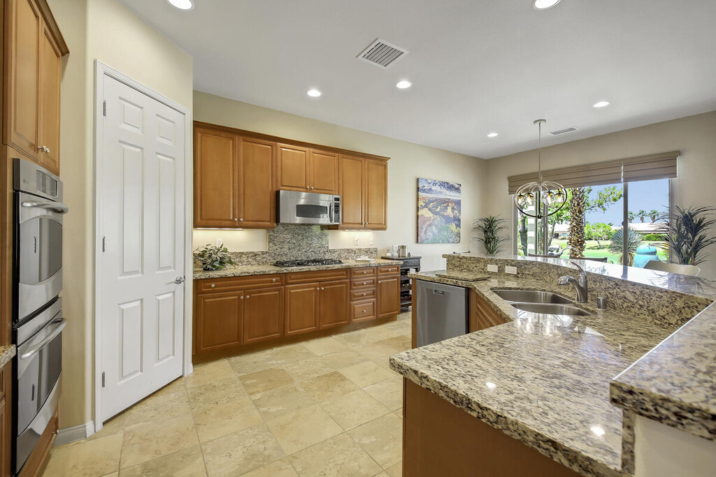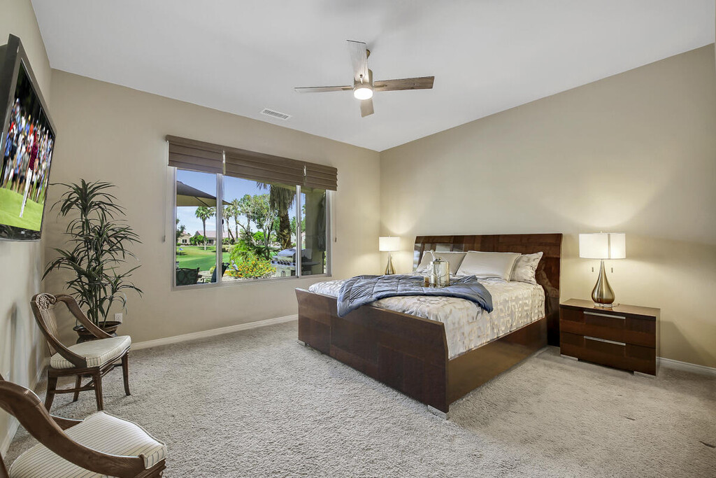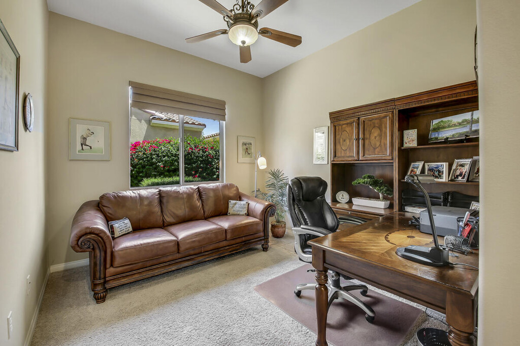 Open for next season. This fabulous Single Family Detached golf course home in popular Sun City SH offers a unique casita with its own full bath,refrigerator and coffee maker,making it ideal for hosting guests. The property also offers a magnificent view of the golf course and San Jacinto/San Bernardino mountains from the beautiful desert garden backyard and patio,promising ultimate relaxation and tranquility. Enjoy a refreshing dip in the pool/heated spa,watch play on the fourth green of the championship course,and dine under the large,covered area that's also equipped with power shades. The recent facelift of the home showcases a contemporary design with bright and inviting spaces throughout. In this open floor plan,the gourmet kitchen flows directly into the living room that boasts a home theater to enjoy from a set of power reclining leather sofas,perfect for relaxing and spending quality time with family and friends. This home also includes a very bright and spacious office,perfect for those work-from-home days or quiet study time. This community offers 2 golf courses,tennis,pickleball,2 pools/spas with fully equipped gyms,clubhouse dining,and so many indoor activities for you to join. With 3 bedrooms,3 bathrooms,and den/office,this immaculate family home will provide you with the comfort and luxury that you have been seeking. Use of the golf cart can be available with a signed liability form and a tenant insurance. $7500 for Jan-April,$6,000 for Oct-Dec,$3,000 for May-Sep. MLS # 219141854