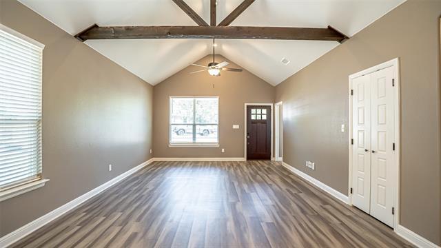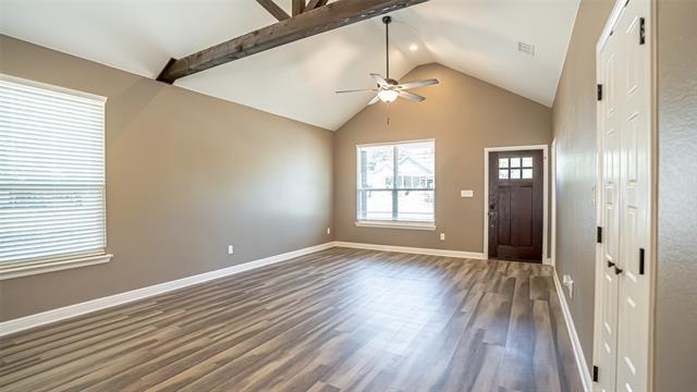 Built in 2020 and newly updated, this stunning 3-bedroom, 3-bath home bomvines modern style with thoughtful upgrades. Inside, you'll love the open concept living area featuring striking ceiling beams, beautiful granity countertops and durable luxury vinyl plank flooring. The spacious kitchen offers ample prep space and a stylish design perfect for everyday living and entertaining. Each bedroom is generously sized and the updated baths showcase quality finishes. Step outside to enjoy a large backyard-ideal for gatherings, play or relaxation-all nestled in a quiet cul-de-sac setting for added privacy. This move-in-ready home blends comfort, charm and convenience in one exceptional package.