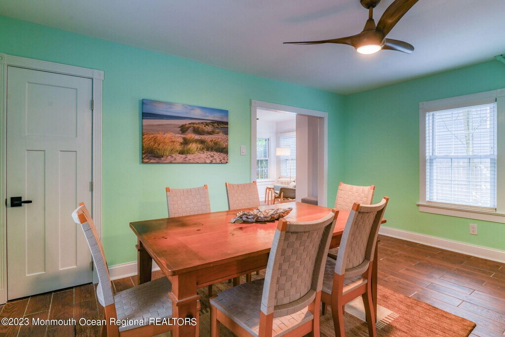 SUMMER 2025 This sweet,nicely furnished 2 bedroom summer rental is available for summer 2024. First floor boasts comfortable living room (with pull out couch) which leads to nice sized dining room,fully stocked kitchen,and newly renovated full bath. Second floor has a light and bright bedroom w queen sized bed,office for working from home and new full bath. Great sized yard for hanging out includes large patio,outdoor storage shed to store beach and outdoor equipment. Lovely quiet street w a Link electric scooter rental stand at the corner. $7,500 for July and $7,500 for August.