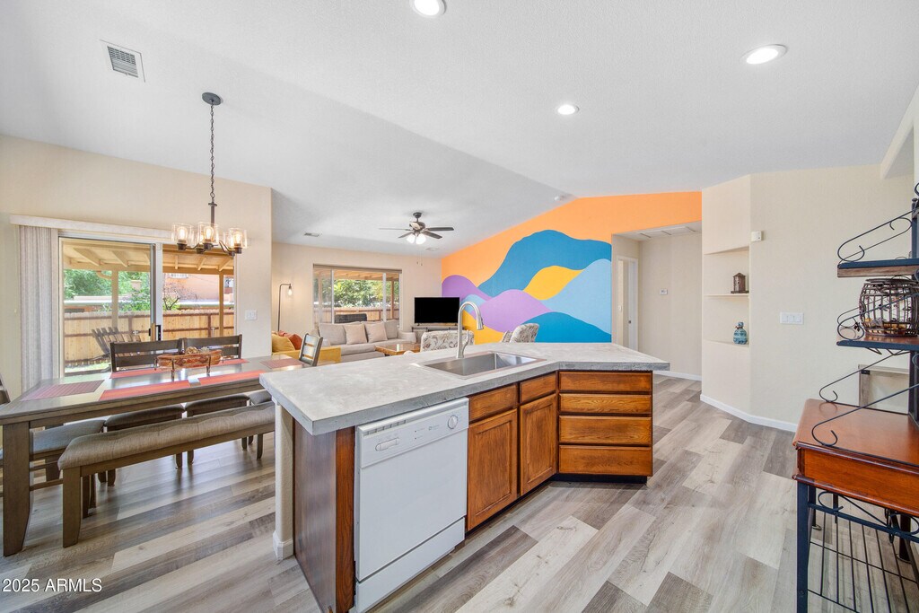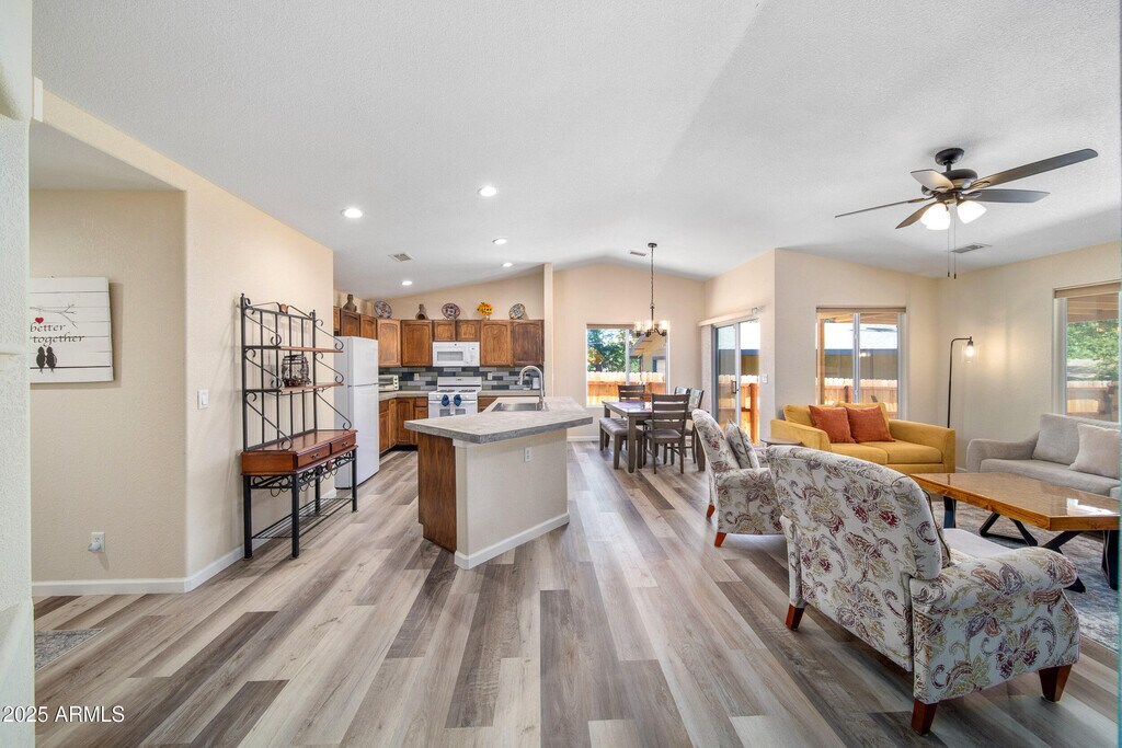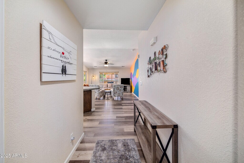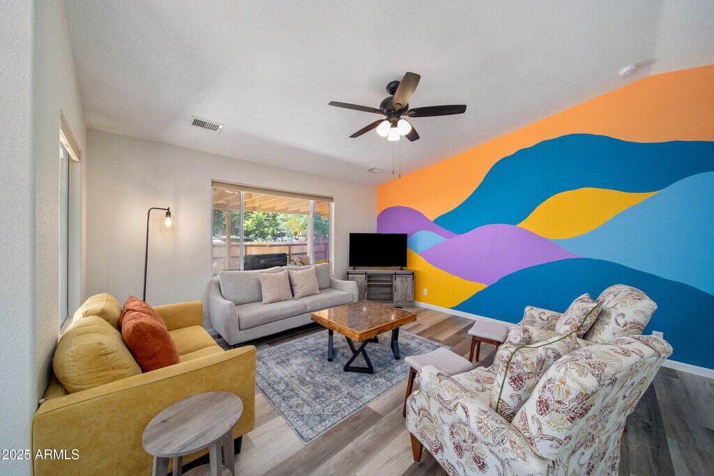 Welcome to a meticulously remodeled home nestled in the heart of Cottonwood's Historic Old Town District. This charming single-level home offers serene tranquility,all within blocks of Old Town shops,top-rated restaurants,and acclaimed wineries that make Cottonwood the ''Heart of Arizona Wine Country.'' This fully furnished home is set to impress,move-in ready,with all the comforts you would expect. Just bring your suitcases and unpack! Inside,you'll discover an inviting open floor plan with vaulted ceilings,abundant natural light,and stylish finishes throughout. The kitchen has been fully remodeled with an island/breakfast bar,rich cabinetry,natural concrete counters,and a gas range for the chef in the family! Warm,vinyl wood planking with decorative area rugs,accent walls provide splashes of color,brightening every room. Both baths have been fully remodeled with refinished cabinetry and gorgeous tiled walk-in showers. Outside,you'll find a private,fully fenced backyard with an extended length,covered patio-a perfect place to gather with friends,enjoy that morning cup of coffee,or relaxing at the end of a day. This quiet street location provides peace and privacy,just a short walk from the river for our nature lovers and minutes from all the excitement of Old Town Cottonwood. Truly a wonderful place to call home!