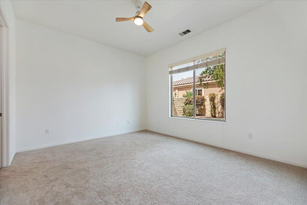 This well-maintained Canterra model with fresh paint and new carpet offers 1,257 sq. ft. of comfortable living on a desirable corner lot in the 55+ community of Sun City Shadow Hills. The open great room features tile flooring,abundant natural light,and sliding doors leading to a private backyard. The kitchen includes stainless steel appliances,granite countertops,and a cozy dining nook. The primary suite offers a walk-in closet and ensuite bath with dual vanities and a walk-in shower,while a guest bedroom and full bath provide space for visitors. Enjoy a private outdoor area with a covered patio and seating space perfect for relaxing. Offered as a long term rental. Come and get it before it's gone! MLS # 219145675