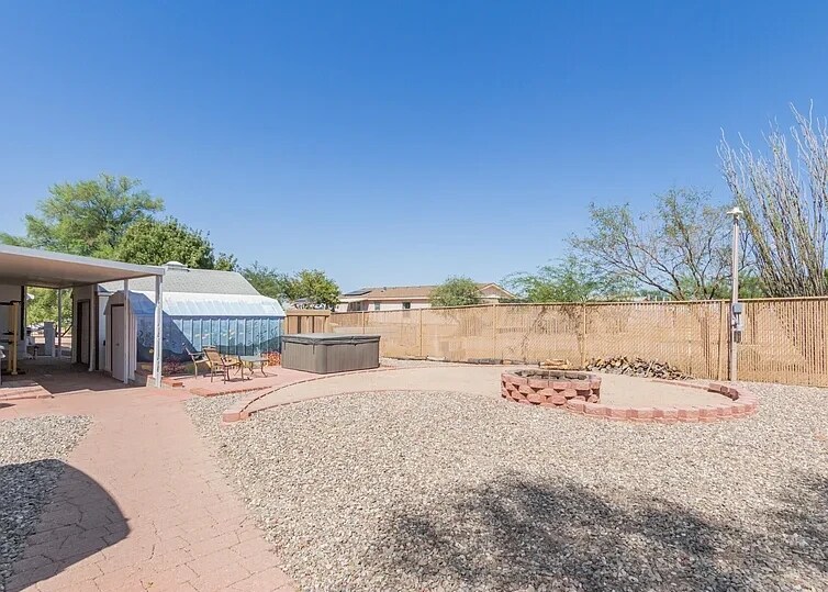 Property Id: 2338267 Amazing 3 bedroom, 2 bathroom house in Tucson. Freshly remodeled, open floorplan with huge pantry/laundry room. Large kitchen with all appliances included. The front entrance to the house has a wheelchair ramp and large, covered seating area, great for entertainment. Large, front and back yard with lots of vegetation! Large trees, bushes, grape vines and extra flowerbeds for your garden. The rental comes with an outdoor hot tub and large fire pit. Also include 2 storage buildings, both with electricity. One is carpeted and has a window A/C unit. The other building has an inside/outside chicken coop and extra storage area. Also included, a 2-car garage features a half bath and a utility sink. All buildings are connected with covered walkways. There is a RV space in front of the home with full hookup. Fenced, 1 acre lot with a large sliding gate. The lot is sheard with another rental unit. Pets are welcome! The landlord pays for water.