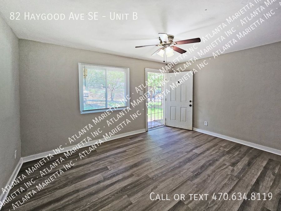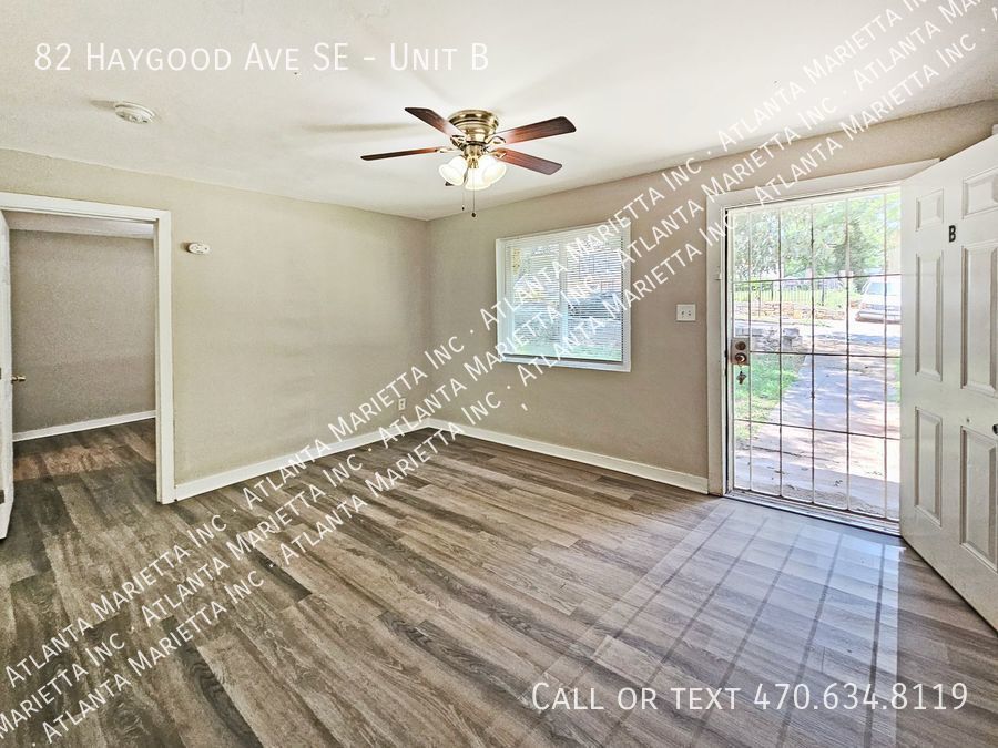 Recently renovated 2-bedroom, 1-bath residence situated in a duplex building. Nestled on a sizable, level corner lot, this home boasts proximity to Hand Aaron Blvd, restaurants, shopping, and convenient access to I-75/I-20. Featuring a single step up and positioned on the ground level, the interior showcases a fresh coat of neutral tan paint with white trim. The property offers desirable amenities such as luxurious laminate flooring, ceiling fans, window blinds, security doors, and a modernized kitchen and bathroom. The expansive living room seamlessly connects to the kitchen, creating an open and inviting space. The kitchen is equipped with cherry cabinets, laminate counters, black appliances, and a secondary door leading to the backyard. Two generously sized bedrooms come complete with ample closet space. These bedrooms share access to an updated bathroom, featuring a tub/shower combo, a single sink vanity with a mirror, and stylish chrome hardware and light fixtures. Tenant pays electric and water, landlord pays for trash. No pets. Housing vouchers accepted. Parking is on the street. For Section 8: • This home is offered by Atlanta Marietta Inc / Atlanta Area Property Management • No pets permitted • Tenant screening includes background checks and eviction checks All Electric Bedroom On Main Laminate Counters Luxury Laminate Floors Master On Main Paint Neutral Window Blinds