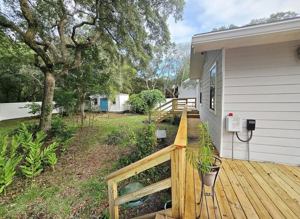 Amazing 2 bedroom and 2 bath home with a bonus room! Bonus room has a built in Murphy bed and has great storage with built in counters and bookshelves, leading to the laundry room and more storage! New ceiling fans in living room and both bedrooms. House comes with must have appliances such as fridge, stove, built in microwave and dishwasher! House can come furnished or unfurnished. Rent includes electric, tenant pays water and internet/cable. House has solar panels, fenced in yard, brand new rebuilt back deck, screened in front porch and ample parking! This house is super close to the gulf and is a must see! House for rent and listed for sale!
