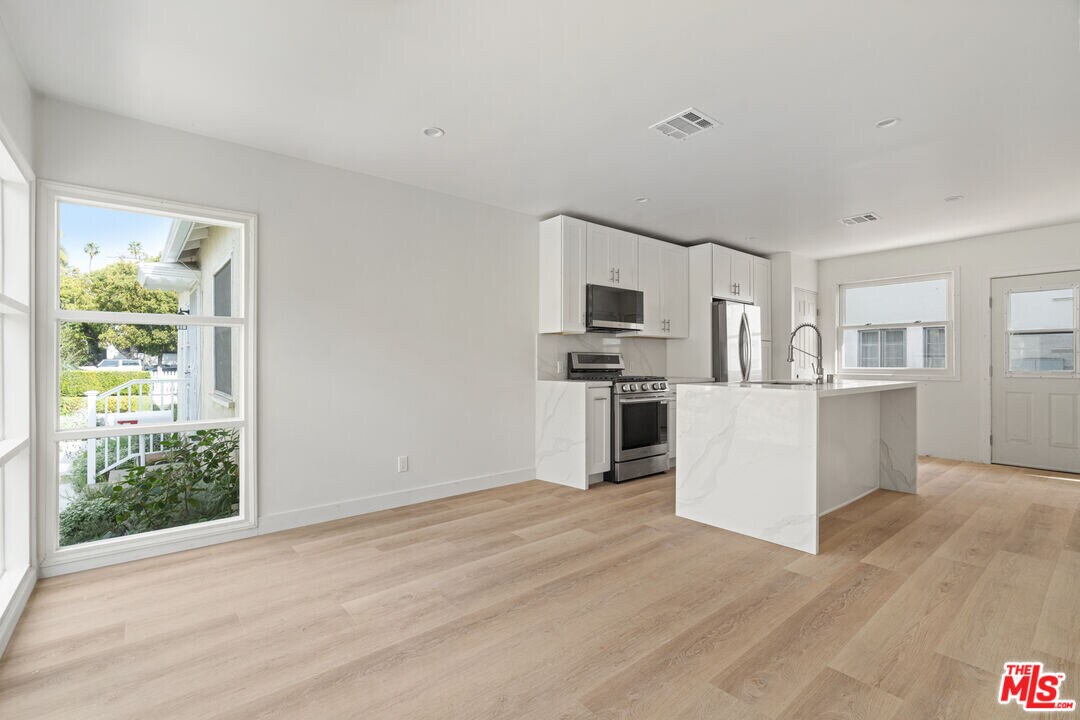 Fully renovated and filled with natural light, this beautifully updated 2-bedroom, 1-bath residence offers modern coastal living in the heart of Santa Monica with PRIVATE YARD!! The open-concept layout features wide-plank wood flooring, recessed lighting, and a sleek chef's kitchen with quartz countertops, stainless steel appliances, and a large center island perfect for entertaining. Spacious bedrooms offer generous closet space, while the stylish bathroom showcases contemporary finishes. Enjoy the ease of indoor-outdoor living with access to a private outdoor lounge area. This unit also includes AC & washer/dryer. Ideally located just moments from Montana Avenue shops and dining, the beach, and all that Santa Monica has to offer. Potential parking spot available for $195.00 per month. MLS# 26649521