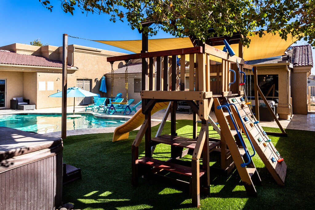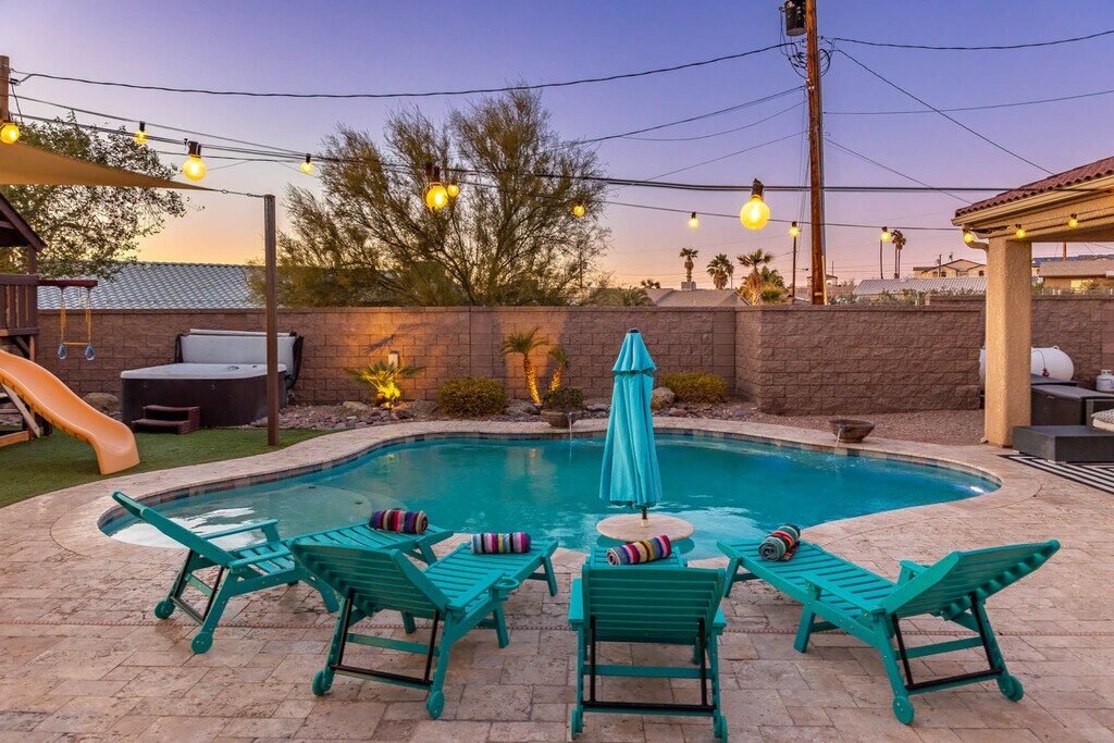 Welcome to luxury in our pet-friendly Lake Havasu City retreat! Boasting 6 bedrooms, 4 baths, and a backyard oasis with heated pool*, spa, firepit, and kids play structure, it's perfect for families or groups. Unwind in the casita, savor outdoor dining, and relax in multiple living areas. Enjoy endless water adventures or explore the desert, golf course, mountains, and beaches. It's the ideal Lake Havasu weekend rental, weekly rental, Spring Break or summer retreat, and snowbird winter rental. **Not a new listing, just under new management. See last photos for past reviews!** LIVING ROOM (Main house) >Large sectional seating with comfortable chairs >Smart TV (login to own streaming apps) >Open concept kitchen/dining/entertainment space >1 GB Wifi Internet LIVING ROOM (Garage conversion "RV) >Comfortable seating area >Smart TV (login to own streaming apps) >Second hang out space away from the main house >Air conditioned KITCHEN >Fully stocked kitchen with cooking supplies >Kitchen island with barstools (3) >Stainless steel appliances >Coffee maker (Keurig) >Blender, griddle, mixer, crockpot *High chair available DINING ROOM (Main house) >Dining table that can seat up to 4 comfortably DINING ROOM (Garage conversion "RV") >Dining table that can seat up to 6 comfortably BEDROOMS (Sleeps 20) Bedroom 1: King bed Bedroom 2 (casita): King bed Bedroom 3: Queen bed Bedroom 4: Two full beds Bedroom 5 (RV space): Two high twin beds, two full futon beds Bedroom 6 (RV space): Two queen over queen bunk beds *Pack n play available BATHROOMS Bathroom 1: Double vanity, walk in shower Bathroom 2: Shower/tub combination Bathroom 3 (RV space): Walk in shower Bathroom 4 (RV space): Walk in shower EXTERIOR FRONT >Large driveway (double driveway) >Plenty of boat/trailer/truck parking (uncovered) >2-car garage >EV charger (50amp) EXTERIOR BACK >Heatable pool* >Hot tub >Sun loungers >Outdoor dining >BBQ grill >Fire pit >Kids playground >Pool umbrella LOCATION This home is nestled in a quiet neighborhood near Avalon Park, just minutes from the Lake Havasu Golf Club, Lake Havasu area beaches, the London Bridge, multiple state parks, and the dozens of restaurants, bars, and nightlife of downtown Main Street- allowing you to experience the ultimate vacation in Lake Havasu City. Guests will have access to the entire property minus a couple locked closets (not in bedrooms) and one of the garages is a game room. We want your vacation rental experience to be memorable and convenient. Keeping a comfortable and clean property is what is most important to us. We will be available anytime via messenger to answer any questions or concerns. We take the approach of being hands off on the property unless needed - we want you to feel like you have the home all to yourself! OTHER THINGS TO NOTE >Must be 25 years old to book >No parties >No events >No smoking inside >Quiet time after 10pm (includes loud voices/music) - Per city ordinance >No unauthorized guests other than those on the reservation >Monthly rental November to March. This home is not available for a long term lease. EXTRA GUESTS (Beyond 16 count) >Must be approved prior to reservation >$35/night per person after 16 guests POOL HEATING >$125/day to heat the pool (full stay required) >Pool heated to 85 degrees >It can take 1-2 days to heat the pool so we need advanced notice >Spa heating included in the booking amount and is always heated >One night stays = $200 to heat the pool PETS >$25/night per pet >$200 charge if pets not disclosed >Must pick up after pet and accompany at all times FIREPIT/GRILL >We try to keep our properties tanks full, but we aren't always sure. If you have to go fill the tank, please send us the receipt so we can reimburse you DEPOSIT >We may ask for a $250 deposit hold, or $500 for holidays LEFT BEHIND ITEMS >$20 service charge added to shipping cost CAMERAS >Doorbell camera (front) >Overlooking driveway/street (front) >Overlooking pool equipment (side) >Motion detected and recorded >Do not tamper with CREDIT CARD PROCESSING FEES Note: When making a reservation through our website or when using credit card payment there is a 4-6% credit card processing charge that is paid to Stripe (the credit card processing company). If AT ANY TIME there is a cancellation, the 4-6% charge is not refunded. DAMAGE PROTECTION The extra charge listed as “Waivo Insurance” on your reservation covers accidental damage in the home within a certain limit. If something happens or breaks during your stay please let us know immediately so we can file a claim. Note: This amount only covers a 10 day or less stay. If you are staying longer than 10 days we will request the difference in amount for coverage. TPT#21591935 DAMAGE PROTECTION The extra charge listed as “Waivo Insurance” on your reservation covers accidental damage in the home within a certain limit. If something happens or breaks during your stay please let us know immediately so we can file a claim. Note: This amount only covers a 10 day or less stay. If you are staying longer than 10 days we will request the difference in amount for coverage. MARRIOTT GUESTS -- You are not charged a Waivo Fee. You will be asked to upload your credit card information to the reservation upon booking, this will act as the card on file (similar to hotels) in case any damages occur during your stay.