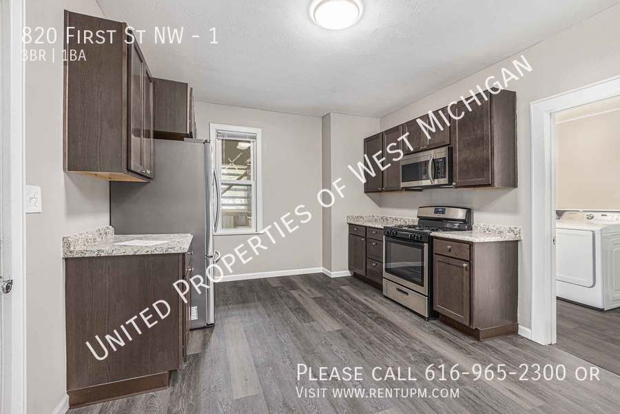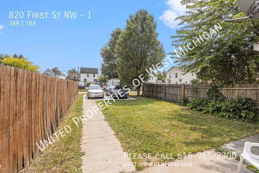 Welcome to 820 First 1! Discover the perfect blend of comfort and convenience in this delightful 3-bedroom, 1-bathroom lower-level apartment nestled in the vibrant SWAN neighborhood of Grand Rapids. This inviting home boasts three cozy bedrooms, an updated bathroom with contemporary fixtures, and beautiful hardwood floors throughout. The kitchen is equipped with sleek stainless steel appliances, including a dishwasher, and the convenience of an in-unit washer and dryer makes laundry a breeze. Enjoy the added convenience of off-street parking. Located in the heart of SWAN, this apartment offers a prime location for exploring the neighborhood's many shops, restaurants, breweries, and parks. You'll be just steps away from the bustling Bridge Street corridor and a short drive from downtown Grand Rapids. Don't miss your chance to call this charming SWAN apartment home. Schedule a viewing today! United Properties | | Schedule a showing: View application criteria: Submit an application: View pet policy: Once approved, you can secure your new home with a holding fee equal to one month’s rent, which reserves the property and is applied toward your security deposit. Based on a few items, the total deposit may be one month or one and a half times the rent; if higher, the remaining balance is due before move-in. United Properties of West Michigan has been helping residents find great homes since 2006 and is proud to be West Michigan’s largest property management company with a 4-star-plus Google rating. All residents enjoy the United Properties Resident Benefit Package, which includes: - Monthly credit reporting to the major credit bureaus - Rewards for on-time rent payments - Ongoing pest control protection This added value is $25/month, in addition to the listed rent. Learn more: We’re excited to help you find your next home and make your move-in experience as smooth as possible. Welcome home with United Properties of West Michigan! Porch Front Covered Porch Rear Covered Tenant Pays Gas Water Heater Gas