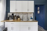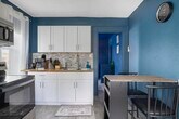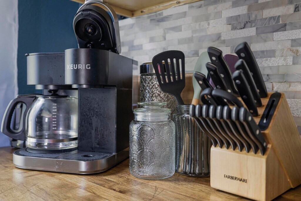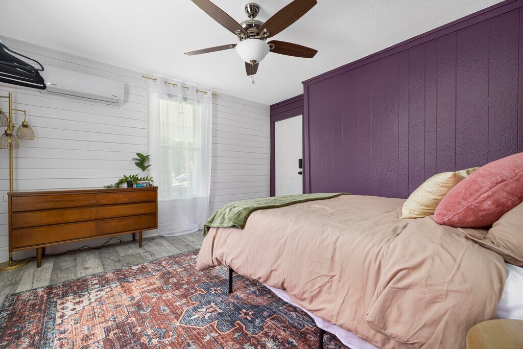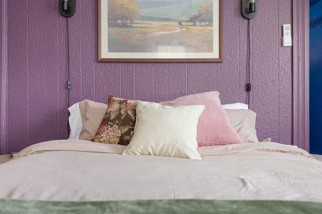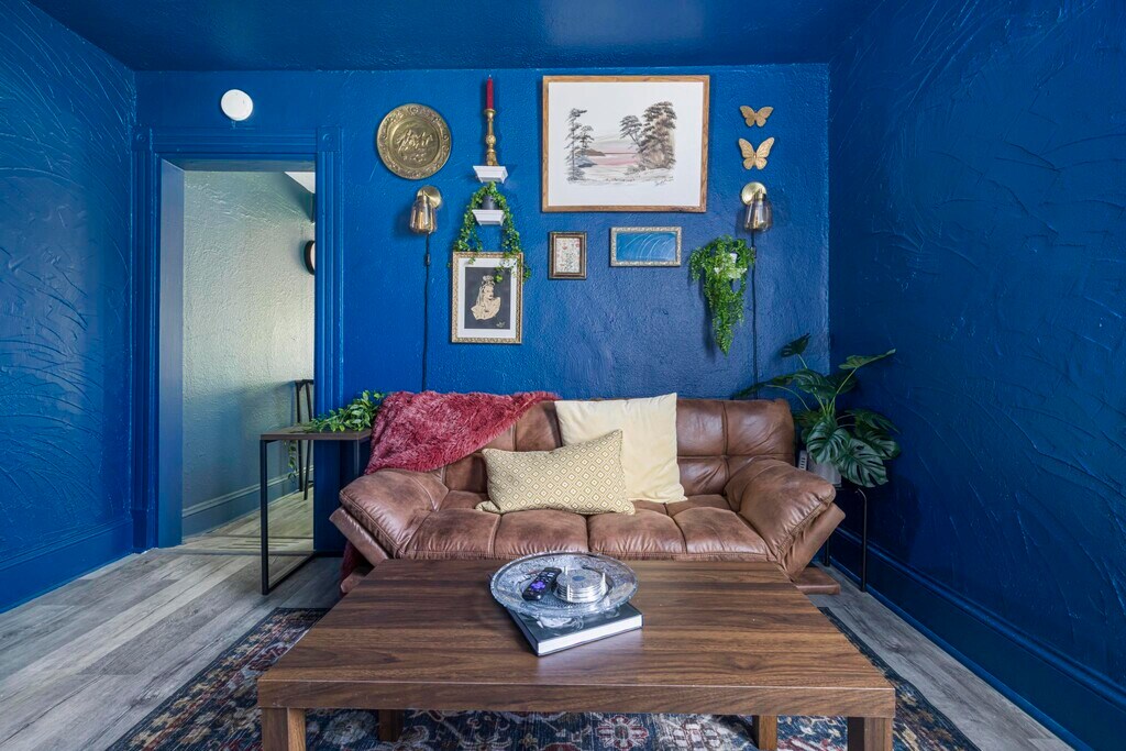 This property is a vibrant and modern one-bedroom, one-bathroom unit located in the quiet, historic Fairmount neighborhood of Bristol. Spanning 700 square feet, this fully furnished space is situated within a peaceful triplex alongside two long-term, unfurnished rentals, ensuring a quiet environment ideal for resting between shifts. The location is exceptionally convenient for healthcare professionals, situated just 5.9 miles or approximately 10 to 12 minutes from the Bristol Regional Medical Center. For daily essentials, a Food City grocery store is located only 0.6 miles away, making it easy to manage errands between shifts. The interior features a unique personality with bold colors and thoughtful touches designed to make you feel at home. The living area is styled with striking blue textured walls and comfortable seating, perfect for unwinding in front of the wall-mounted TV. The adjacent modern kitchen is fully equipped for long-term stays, featuring stainless steel appliances, butcher block countertops, and a contemporary mosaic backsplash. It also includes a dedicated coffee station with both Keurig and drip options and a convenient two-person dining table that can double as a workspace. The bedroom serves as a serene retreat with deep purple walls, a ceiling fan, and ample natural light, while the private bathroom features rich magenta walls and a modern vanity. Outside, residents can enjoy a shared front porch with comfortable outdoor seating. The property is less than a mile from State Street and its various local dining favorites like 620 State and Burger Bar. For outdoor relaxation, Steele Creek Park is just 4 miles away, offering hiking trails and a lake. All utilities and high-speed Wi-Fi are included, making this an ideal home for your Bristol assignment.