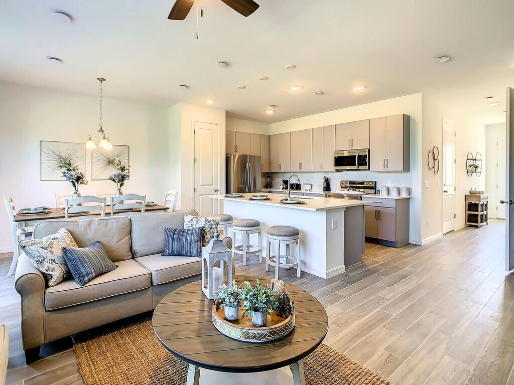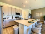 Experience the charm of Orlando with this gorgeous premium townhome, perfectly situated in a premier resort destination. Just minutes away from Orlando's top attractions, this fully equipped townhome offers a beautiful lake view and is conveniently located steps away from the clubhouse, pools, and fun activities. This townhome is designed for families and groups of friends, featuring three bedrooms, including a master bedroom with a king-size bed and en-suite bathroom, a second bedroom with a queen-size bed, and a third bedroom with a bunk bed and a twin-size sofa bed. The living room is equipped with a comfortable couch, a 55" TV, and a PS4 gaming console. The brand new, fully equipped kitchen includes all appliances and a dining table for six, ensuring you feel at home during your stay. Guests can enjoy free parking and high-speed internet. Optional paid add-ons include a pack and play, high chair, early check-in, and late check-out. Please inquire in advance to confirm availability for these services. Located in a vibrant area, this townhome is close to a variety of dining and shopping options, including Publix Supermarket, Disney Springs, and Orlando Vineland Premium Outlets. For entertainment, Walt Disney World is just 9 miles away, and Universal Orlando is 23.5 miles away. The area also offers golf courses, parks, and other attractions, making it an ideal location for exploring Orlando. There is construction in the area, so some noise may be present. The property is strictly for vacation use, and no filming or use as a warehouse is allowed. Guests must be at least 18 years old to book, and no unregistered guests, smoking, or pets are allowed. A $200 security deposit is required, which is fully refundable if no damages or cleaning issues are found upon check-out. Wildlife safety guidelines should be followed, and guests are expected to take care of the home as their own.