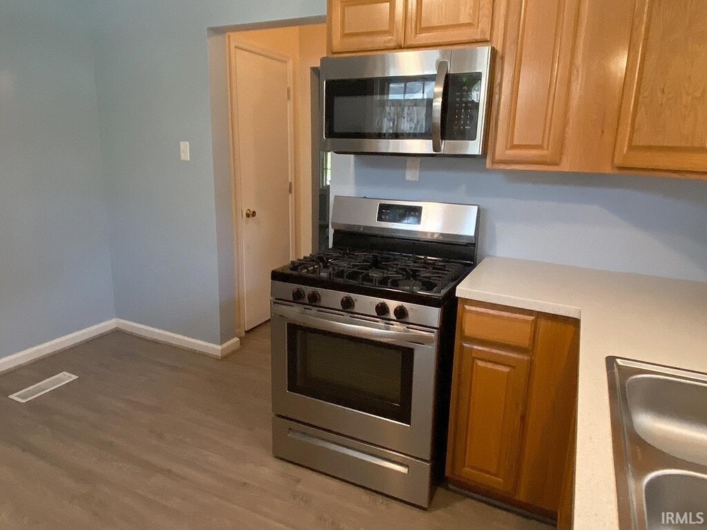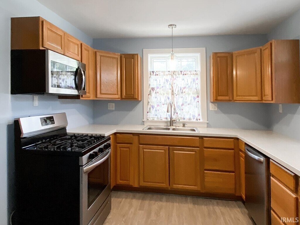 Large 3 bed 2 bath home is located close to Campus, Downtown, Kilroys Sports, and Upland Restaurant & Brewery. Updated kitchen with stainless steel appliances, newer flooring throughout, updated light fixtures, and modern decor. This home features a large dining room and living room along with a partially finished basement with washer and dryer and a large front porch! Driveway and oversized garage provide lots of off street parking. Lawncare included. Available August 2026
