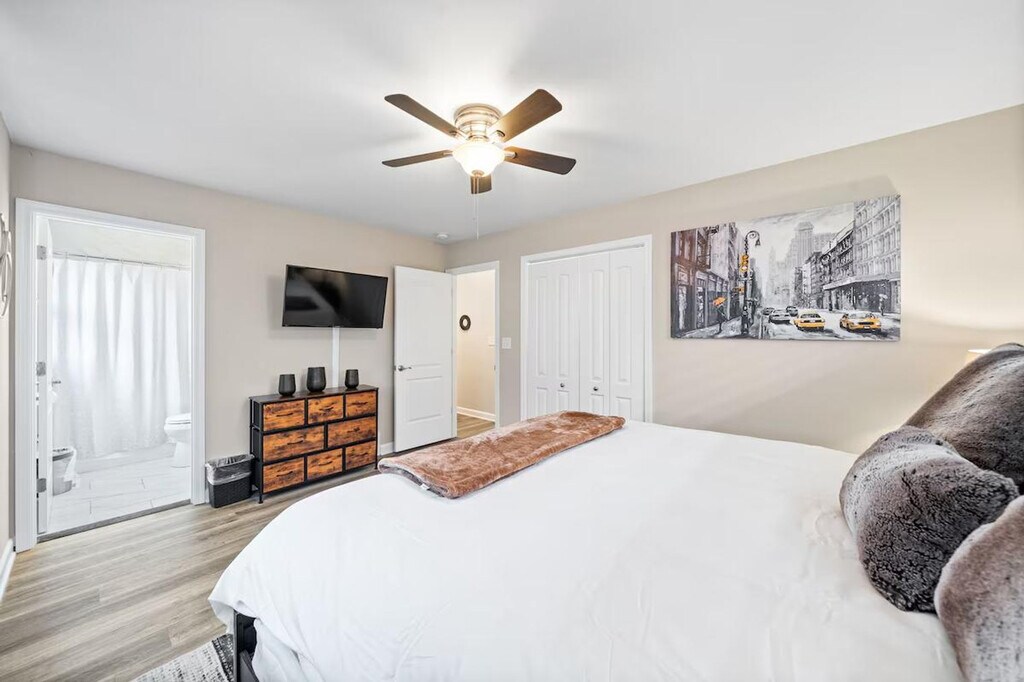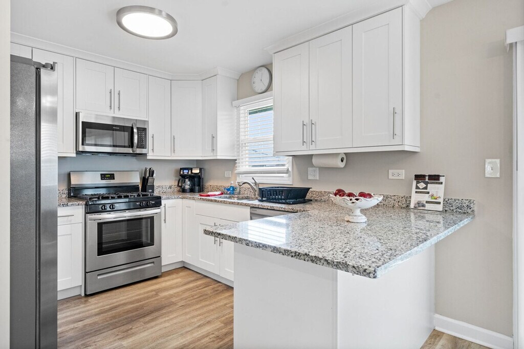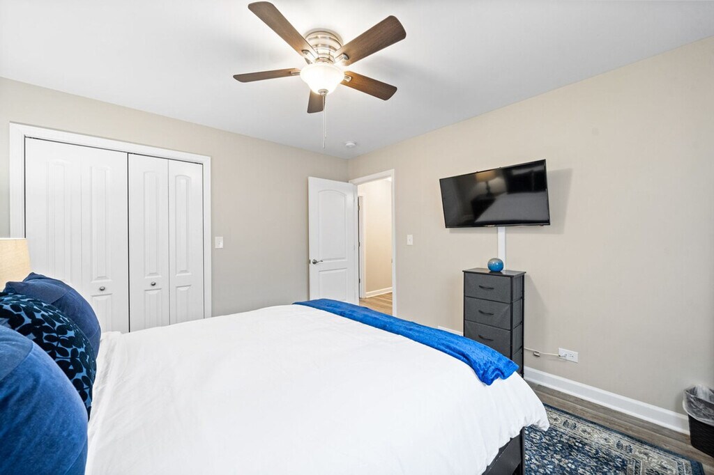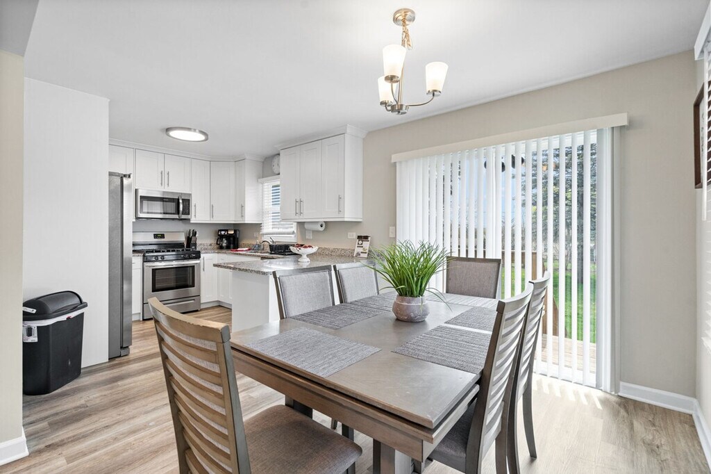Feel at home in this beautifully renovated home located in a tranquil area of Lake In The Hills, IL. This single-family home features 1,744 square feet, 3 bedrooms, and 3 full bathrooms. The kitchen features stainless steel appliances, along with lots of cookware and utensils for preparing family meals with ease. The living room has a 55" TV with a soundbar, and all bedrooms feature a 40" TV. There are also playing cards and board games available to keep your family entertained. The home is family-friendly and includes one air mattress for an additional sleeping option. It is equipped with other essentials that parents of young ones often need, such as a stroller, booster seat, pack & play, and a highchair. If the home has a fireplace, it is not for guest use. The home has a large, fenced yard and a spacious driveway leading up to a 2-car garage. The internet speed in the home is 150 Mbps, and there is an Ethernet hard line available for use, if needed. We do not accept reservations without security fees paid upfront. [SI]
