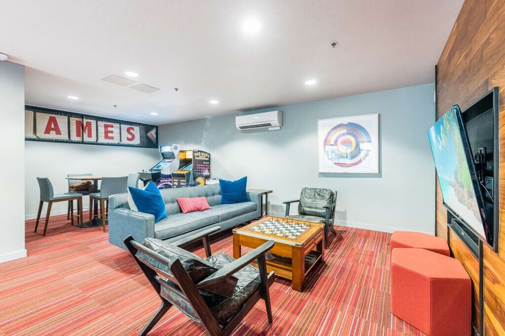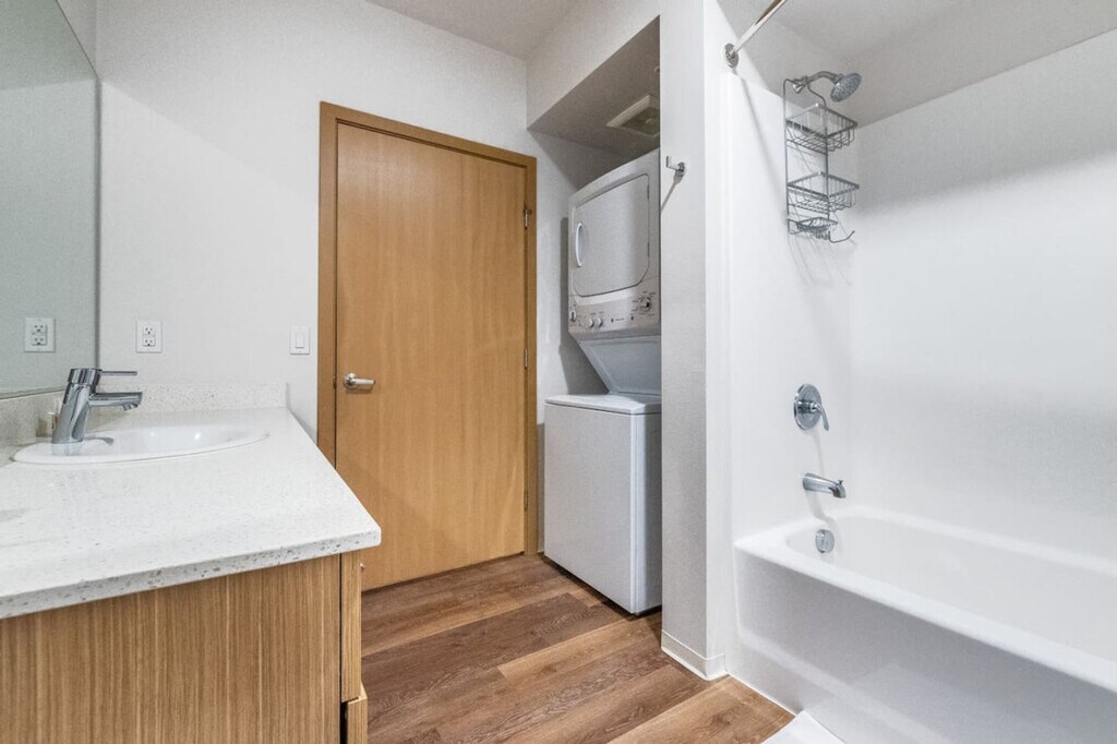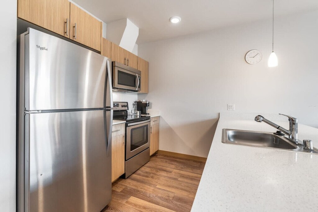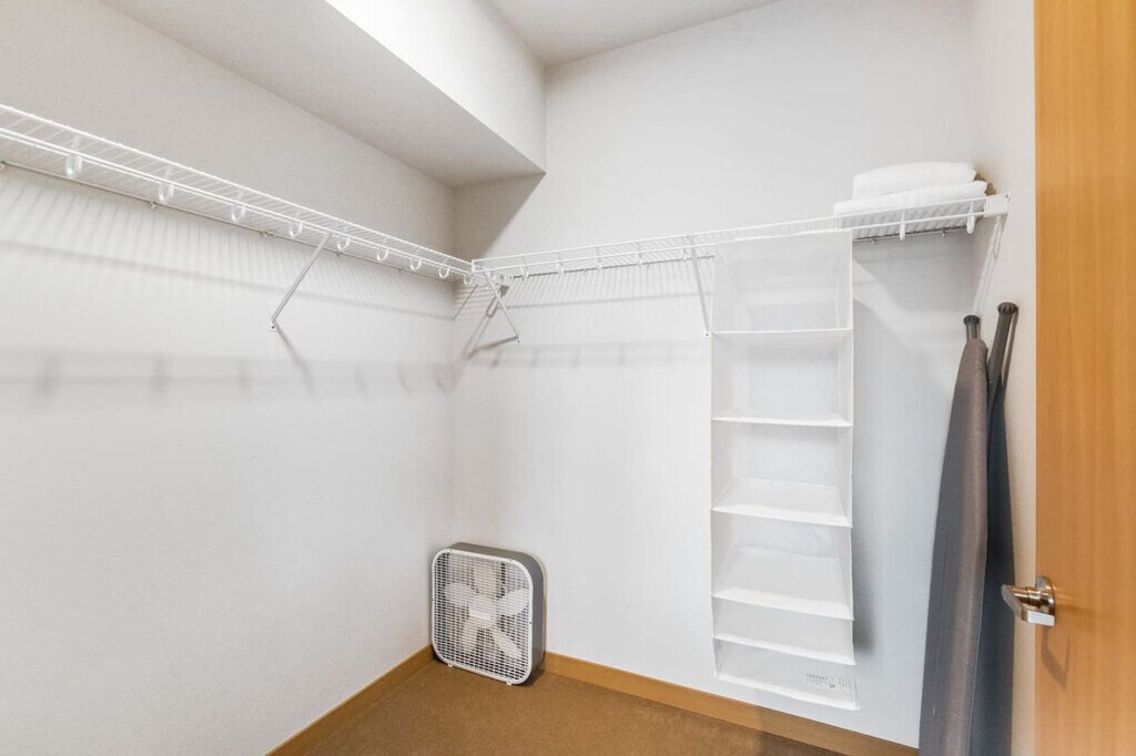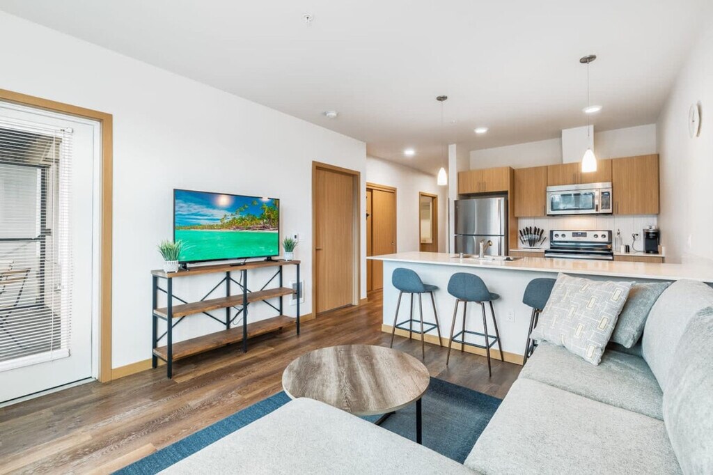 Feel at home in this fully furnished private 1-bedroom plus office suite nestled within a sophisticated modern apartment complex in downtown Redmond. The fully equipped kitchen boasts high-end appliances along with plates, glassware, silverware, pots, and pans. An in-home washer and dryer ensure added convenience. Stay entertained with a Smart TV featuring Prime, Hulu, Disney+, and Netflix for all your streaming desires. Complimentary amenities such as coffee, tea, paper towels, laundry and dishwasher pods, toilet paper, bath towels, soap, shampoo, and conditioner are provided as starter packs. Common area luxuries include a fitness center, clubhouse, pet hub, and game room. Pet enthusiasts rejoice as this apartment is pet-friendly with a fee of $25 per night (for stays up to 10 days) or a $250 flat rate fee (for stays exceeding 10 days) per pet, with a maximum of 2 pets. Reserve secure garage parking at $150/month or $10/day. Unreserved street parking is available free of charge. Downtown Redmond is known for its dynamic blend of urban amenities and suburban charm. The area boasts a mix of modern developments and a touch of historical character and is renowned for being the headquarters of Microsoft. You'll find a range of tech-oriented businesses, shops, cafes, and restaurants. The Redmond Town Center, a popular open-air mall, serves as a focal point for shopping, dining, and entertainment. Getting around is a breeze with convenient transportation options. There is no air conditioning, but fans will be provided. Check-in is at 4PM and check-out is at 11AM. Lost key fobs, parking remotes, or mail keys will be charged at $100 each. Booking requires ID verification and adherence to the rental agreement. Includes fast Wi-Fi, ensuring uninterrupted productivity. To ensure your convenience, remote check-in is offered for a seamless arrival experience. Prior to your stay, easy instructions to access the property will be provided. [SI]