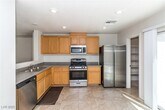 Discover comfort and versatility in this single-story home located in a Northwest Las Vegas community near Iron Mountain Ranch. This residence features 3 bedrooms, 2 bathrooms, a 2-car garage, and a flexible den with French doors—perfect for a home office, guest room, or a 4th bedroom. The bright open layout offers a blend of tile and carpet flooring, neutral tones, and window coverings throughout. The spacious kitchen is designed for both function and flow with abundant cabinet space, a walk-in pantry, and all major appliances included, opening to the dining area for easy entertaining. The airy living room is filled with natural light and features a ceiling fan for added comfort. The private primary suite includes a walk-in closet and en-suite bath with a walk-in shower. Additional highlights include a separate laundry area with shelving, low-maintenance desert landscaping, a private backyard with side gate access, and great curb appeal. Don’t miss this fantastic opportunity!