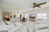 Available now off-season and next season. Saratoga in Lely Resort is a gated community. Enjoy stunning sunsets,lake,and fountain views from this beautifully updated first-floor residence. This light and bright home features an updated kitchen with quartz countertops and a functional open layout,perfect for everyday living and entertaining. Relax on the screen lanai with western exposure overlooking the lake,and the sunsets are absolutely beautiful. The Electric shutters are a great convenience on the lanai. Spacious living areas and well-appointed bedrooms. The primary bedroom features a king bed,the guest bedroom a queen bed (adjustable Tempurpedic),a single bed in the bonus room,and a sofa sleeper in the den. There are Smart TVs in all the rooms,including the lanai,along with wifi. Lely Resort is known for its amenity-rich lifestyle,offering three championship golf courses,a restaurant,walking,and biking trails. Includes access to The Players Club and Spa,which is essentially the main lifestyle and social hub of the coummuniity and the membership is transferable. A truly wonderful experience! Lely Resort is close to shopping,dining,and Naples beautiful beaches. Don't miss this great opportunity and beautiful home! Click on the Virtual Tour!