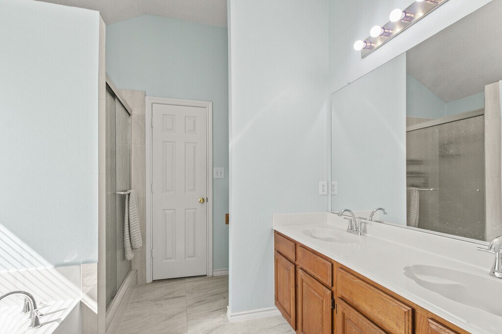 Welcome home to this charming 3-bedroom,2-bath,1,654 sq. ft. single-story gem in the heart of Frisco! Featuring a timeless brick elevation and soaring front windows,this home shines with updates throughout that include new carpet and paint (2024),upgraded kitchen and bathrooms,and granite countertops. Enjoy a vaulted-ceiling dining room filled with natural light,and a cozy family room with a gas fireplace. The open kitchen and breakfast nook make everyday living and entertaining a breeze. The primary suite offers a luxurious retreat with a jetted tub,separate shower,and dual sinks. Outside,relax in your private fenced backyard with recent upgrades including roof replaced (2014),new oven and dishwasher (2018),new fence (2022),and new garage door (2022). Enjoy taking a dip in the sparkling community pool! Located near HWY 121 with top-rated Frisco ISD schools,this home has it all. Don’t miss your chance to make it yours—schedule your showing today! MLS# 4479795