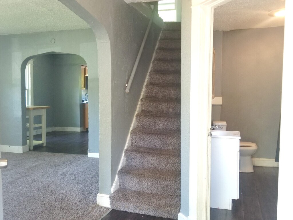 Lovely home with peaceful back deck and large, fenced-in lot in Kansas City. This home could easily be used as a 3-bedroom home, as there is a large upper-level space that could be used as a bedroom, office, or sitting room. Newer fixtures, new wood floors and all appliances included. Home has laundry hook-ups in the unfinished basement. No smoking in the property. Pets allowed with non-refundable pet cleaning fee and extra monthly rent. Please Call/Text our office to schedule a showing. Property sits in a peaceful neighborhood in Kansas City. Many of the homes in this neighborhood have been remodeled and there are several new homes. The house has a private driveway area behind the home and some off-street parking in front of the home. The yard is large and fenced-in. Enjoy hanging out on the large back deck or covered front porch.