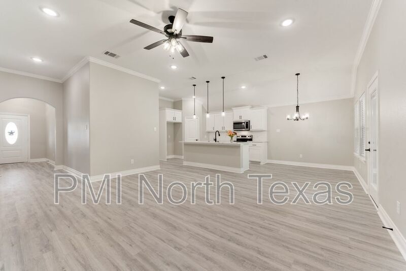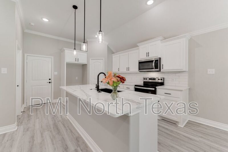 Gorgeous 3 bed 2 bath home, NEW BUILD!! A cozy covered porch welcomes you into the home featuring a bright, open floorplan with laminate wood flooring throughout, no carpet! The modern kitchen boasts stainless steel appliances, granite countertops, large island, subway tile backsplash, and opens to the dining and living spaces, ideal for entertaining! Relax in the master suite with vaulted ceiling, dual vanity and garden tub with separate shower. Enjoy the fenced backyard under the covered patio. Pets case by case. $250.00 pet deposit $100.00 non-refundable pet processing fee per pet. $200.00 lease coordination fee due at lease signing. Tenants have the option to enroll in a Resident Benefits Package (RBP) for $35.00 per month which includes credit reporting for on-time rent payments, $1M Identity Protection, HVAC air filter delivery and more!