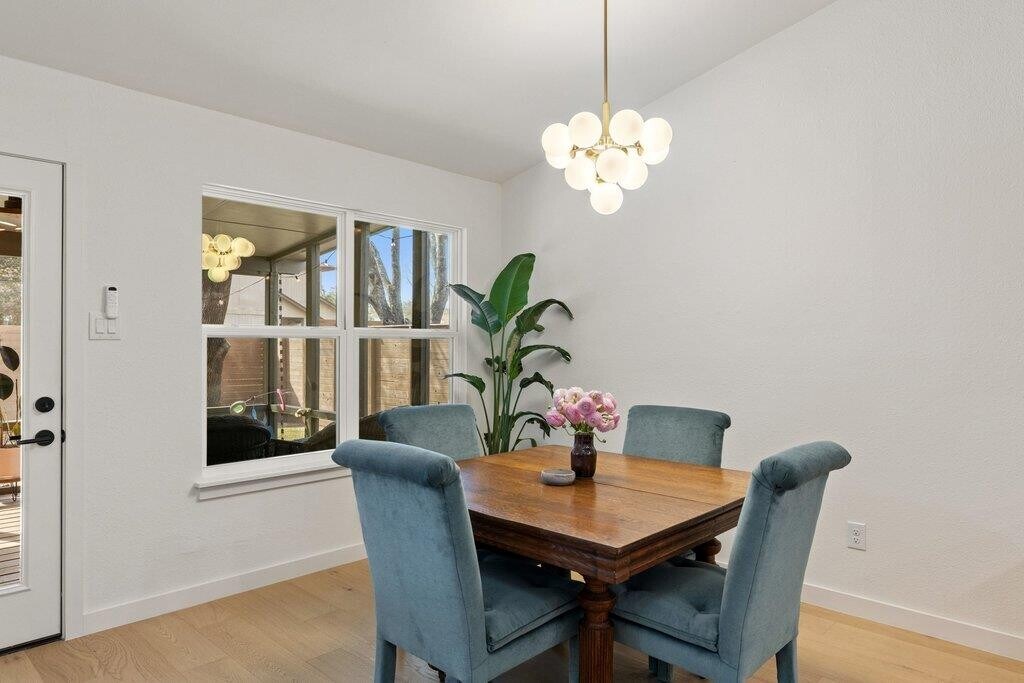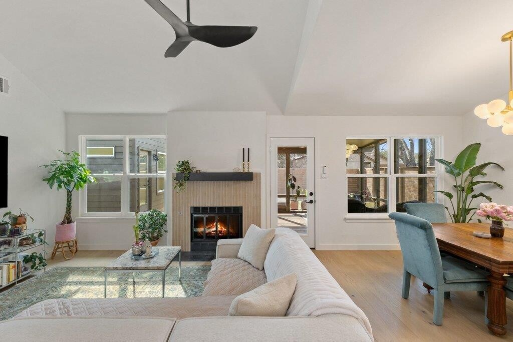 Located in the heart of Southwest Austin’s Maple Run neighborhood, this 3-bedroom, 2-bath home was remodeled in 2025 by Pesoli Properties with thoughtful design and elevated finishes throughout. Soaring ceilings, abundant natural light, and wood floors in the main living area create an open, airy feel, while the fireplace adds warmth and character. The kitchen features a beautiful tile backsplash, stainless steel appliances, and bar seating, flowing seamlessly into the dining and living area for entertaining. Two bedrooms are located on the main level, and the primary suite is privately tucked away on the second floor. Offering a quiet retreat separate from the rest of the home, the space features high ceilings, wood floors, a walk-in closet, and a spa-like ensuite bath with a double vanity, walk-in shower, and soaking tub. Stepping outside, the backyard is designed for health and wellness and entertaining alike, featuring a screened-in porch, attached sauna, outdoor shower, and a cowboy pool. A detached studio with a mini-split provides flexible space for a home office, gym, yoga studio, or guest overflow. Set on a charming, tree-lined street in Maple Run and just minutes from South Austin’s shopping, dining, and entertainment, this home delivers standout indoor-outdoor living in a highly desirable location. Stepping outside, the backyard is designed for health and wellness and entertaining alike, featuring a screened-in porch, attached sauna, outdoor shower, and a cowboy pool. A detached studio with a mini-split provides flexible space for a home office, gym, yoga studio, or guest overflow. Set on a charming, tree-lined street in Maple Run and just minutes from South Austin’s shopping, dining, and entertainment, this home delivers standout indoor-outdoor living in a highly desirable location. MLS ID 9109879