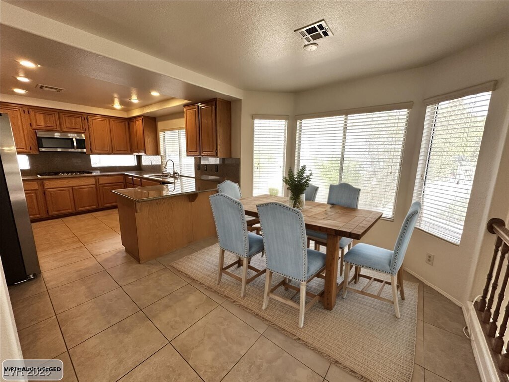 Spacious 5-bed home in Desert Shores with new flooring and fresh paint throughout. Two inviting living areas; one with custom built-ins and a cozy fireplace. Bright kitchen with granite counters, gas cooktop, and breakfast nook overlooking the private backyard. Upstairs primary suite features dual vanities, soaking tub, and a large walk-in closet. Enjoy weekend BBQs under the palms, fruit trees out back, and plenty of parking with a 3-car garage. Desert Shores community access, minutes from Summerlin dining and the lake. Ready now; pets considered.