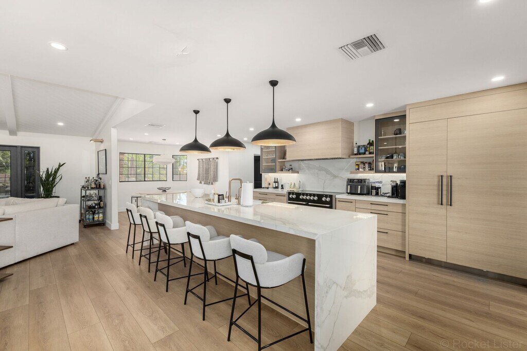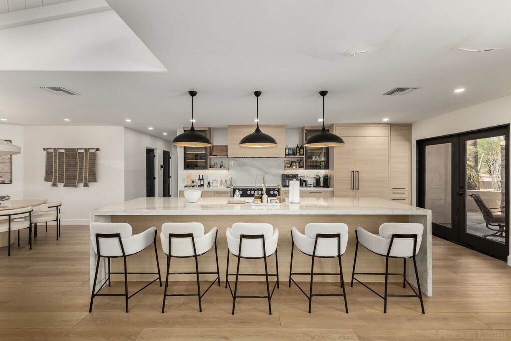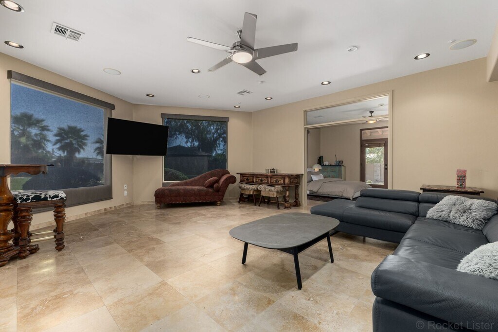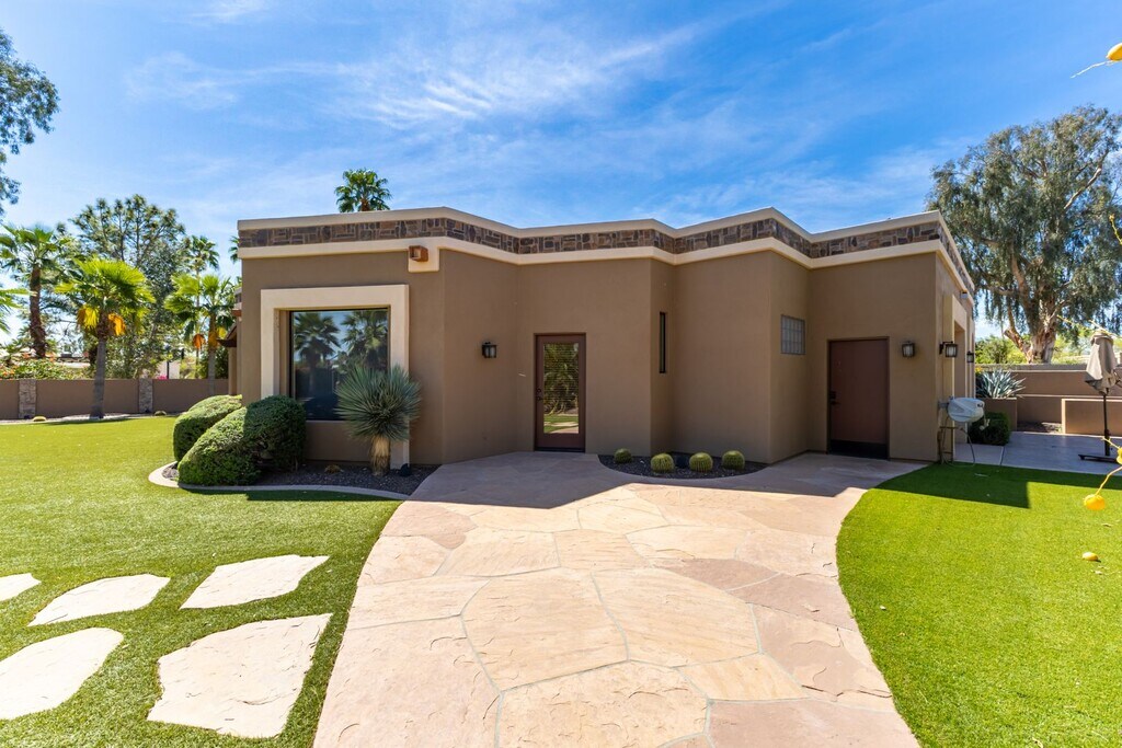 A MUST SEE!!! This FURNISHED Modern Luxury 3900 sq.ft. OASIS in Scottsdale, showcases its STUNNING home with 4 bedrooms and 2.5 bathrooms in the main house and 1 bedroom and 1 bathroom in the detached 1000 sqft Casita! Each detail was carefully chosen and quality crafted from the tongue and groove ceiling of the patio to the modern flooring throughout the property. Entertain in grand style in a gourmet kitchen with porcelain waterfall edge counter tops and backsplash, custom light fixtures and high-end luxury appliances. A lavish primary sanctuary with ensuite bath offers glass-enclosed shower, modern tub and backlit mirror and walk-in closet. Generous secondary bedrooms and a remodeled dual sink bath with glass-enclosed negative edge shower assures your guests every comfort. Appreciate a plush THEATER ROOM and a 210-bottle temperature-controlled WINE ROOM. A detached casita offers another bedroom, massive living room and bath. The car enthusiast will appreciate the 4-car garage and 2 RV parking spots. The backyard boasts a huge SPA, HEATED pool, water feature, outdoor shower, outdoor kitchen with Viking grill, pizza oven, gazebo with fireplace, lush turf yard with putting green, and lots of palm trees. This marvelous home offers something for everyone! Located near the Scottsdale Airpark; Old Town Scottsdale entertainment area, and the stunning outdoor, upscale mall at the SCOTTSDALE QUARTER and KIERLAND. RATE: $20,000 - $30,000 (Rate depends on length of lease term and season); 6-month minimum lease term preferred. Long-term lease welcomed! Pool and Landscaping service included. Call for details, availability and flexibility based on season and term length for price.