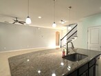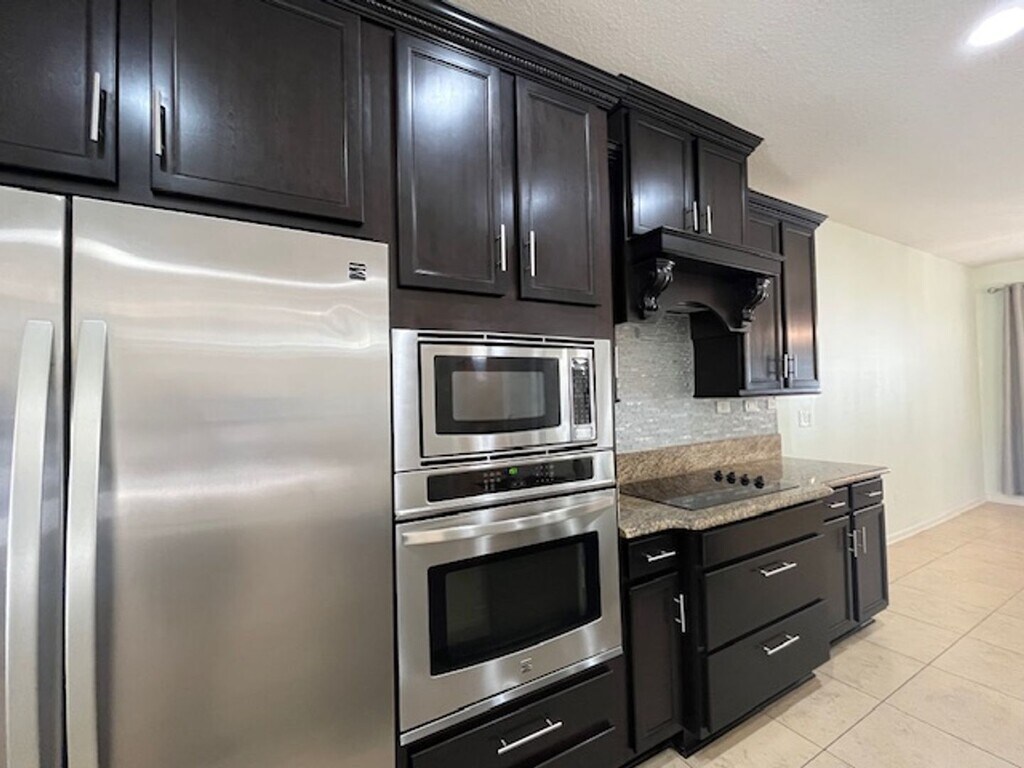 You'll love this 2200 sf, 4 BR/3 BA Dreamfinders built home! Large open floor plan with tile throughout main living area. Upgraded kitchen with custom dark cabinetry; wall oven and microwave; glass cooktop; granite counter tops and stainless appliances. Large eat-at island as well as separate dining area. Master suite with vaulted ceiling; double vanity and separate tub and shower. 4th bedroom upstairs is great for teen or in law suite and is complete with full bath. Oversize screen porch opens to fully fenced back yard. 3 car garage. Security and irrigation systems. Small/Medium dogs ok. Close to shopping, schools, restaurants. Call today to schedule a showing .