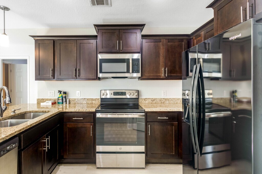 This beautiful newer-construction home features an open living, kitchen, and dining area with vinyl plank flooring throughout. The kitchen offers granite countertops, shaker-style cabinet doors, stainless steel appliances, a breakfast bar, walk-in pantry, undermounted sink and garbage disposal. The master suite includes a spacious walk-in closet, and the master bath features a tub/shower combo and single vanity with laminate countertops, while both bathrooms have porcelain tile floors and tub/shower combos. Additional features include a single-car garage with insulated garage door, a 50-gallon hybrid hot water heater, NEST smart thermostat, and security system. Pets permitted. At Rob Brooks Realty, we strive to provide an experience that is cost-effective and convenient. That's why we provide a Resident Benefits Package (RBP) to address common headaches for our residents. Our program handles insurance, identity protection, pest control, air filter changes, utility set up, credit building, rent rewards, and more at a rate of $39.95/month, added to every property as a required program. More details upon application. Total monthly payment (Rent + $39.95). Virtual Tour: