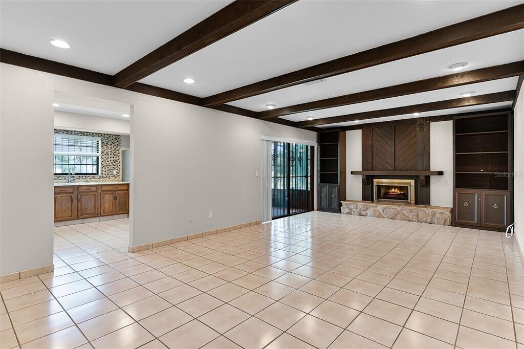 This spacious 4-bedroom,2-bath home offers comfort,functionality,and stunning water views in a peaceful setting located on an oversized lot. A bright front living area greets you upon entry,with a versatile 4th bedroom or office featuring French doors. Continue into the main living room with wood beam accents,built-in shelving flanking an electric fireplace,and sliding doors to a screened patio—perfect for relaxing after a long day. The L-shaped kitchen boasts stainless steel appliances,a pantry,and a breakfast nook,with water views from the sink to make meal prep a pleasure. All bedrooms are on the left side of the home,with Bedrooms 2 and 3 across from a full bath with a walk-in shower. The primary suite at the back offers serene water views,a spacious vanity,and a shower/tub combo. Tile flooring runs through the main living areas,with vinyl in the bedrooms. The garage houses the laundry area with washer/dryer,a 2-car parking space,and a water softener system - tenant will be responsible for maintaining salt levels. It's ready for you to move in and start enjoying the lifestyle! MLS# TB8416716