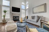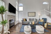 Beautifully FURNISHED 3-bed, 3-bth home. From the moment you step inside, you'll be captivated by the exquisite features that define property. Stunning pool and spa, this home is a true oasis of relaxation. Imagine spending warm summer days lounging by the poolside, or unwinding in the soothing waters of the spa. Vaulted ceilings create an open and airy ambiance, complemented by an impressive stone fireplace. Oversized windows flood the space with natural light & provide picturesque views of the backyard paradise.Cooking enthusiasts will revel in the true chef's kitchen, complete with upgraded cabinetry, sleek quartz counters, and top-of-the-line stainless steel appliances. Convenience meets lifestyle with this home's fantastic location. A short walk away, you'll find Walter Jacobson Elementary School, All American Park, and a grocery store, ensuring that daily essentials and leisure activities are always within easy reach. Schedule a tour today. The application process is hassle-free.
