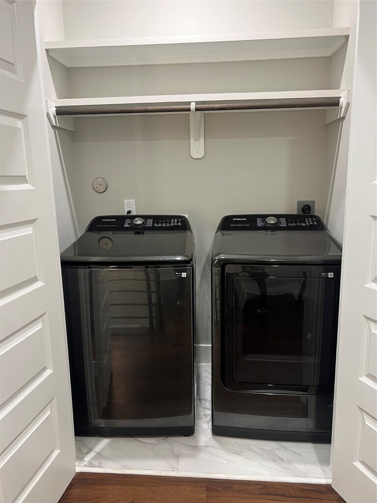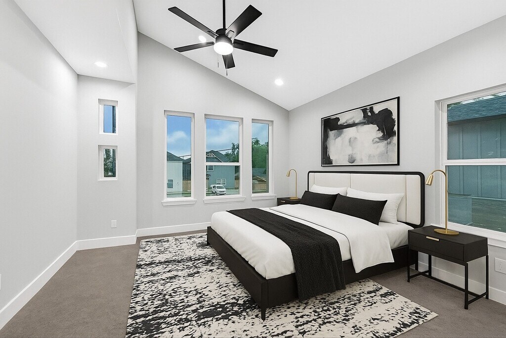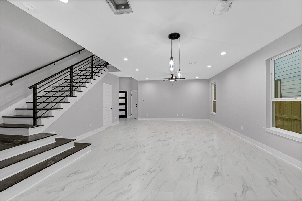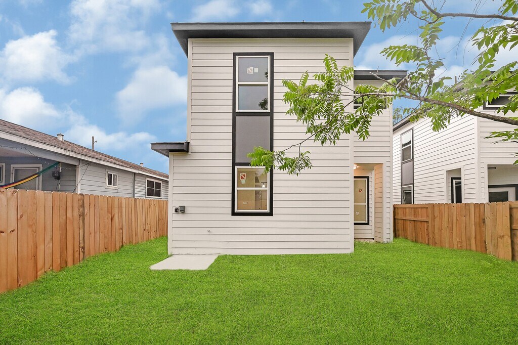 ALL APPLIANCES INCLUDED! No HOA,and just 8 miles from Downtown HOU this 3-bedroom,2.5-bath rental home with a 2-car garage features a spacious open-concept living area with vinyl plank flooring,recessed lighting,and large windows for natural light. The kitchen includes a generous island with quartz countertops,subway tile backsplash,linear pendant lighting,and plenty of cabinet storage. The primary suite offers a walk-in closet and a modern bathroom with dual vanities,a glass-enclosed tiled shower,and a soaking tub in a sleek black-and-white design. Additional features include a fully fenced backyard and a front-facing 2-car garage. *2 year lease term available. Ask about pricing. MLS# 44221963