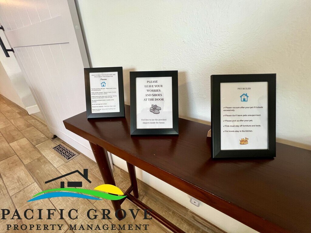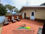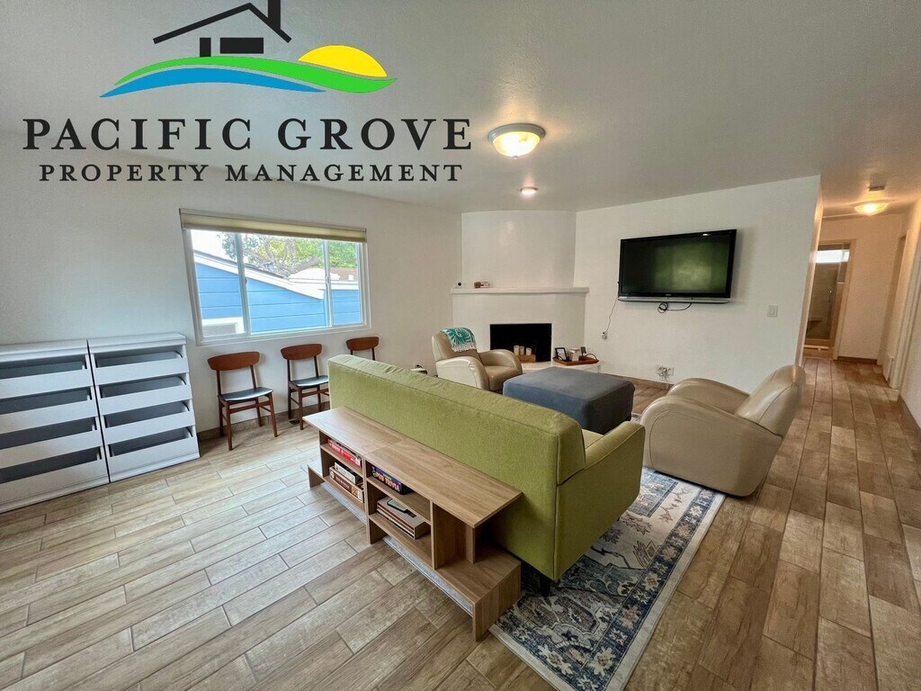 Available Move-in Date: Available NOW! To apply, click here: Available to View: Immediately For viewing instructions, please contact and ask to speak with Chad! Welcome to 821 2nd Street, a thoughtfully furnished 3 bedroom 2 bathroom home located at the top of 2nd street in Pacific Grove, CA. Designed for a minimum of 30 days, this move-in-ready property blends comfort and modernity with a touch of minimalism. As you approach the home you'll notice the steeply sloped driveway leading to the one car garage alongside a concrete patio-esque area to be utilized for lounging. The entry to the home is up about 10 stairs, which provides an elevated feel to the living arrangement. At the top of the stairwell next to the front door you'll notice a patio space for exterior enjoyment, opposite the large balcony area (with access from the kitchen) for a more relaxed, spacious feel. The large wooden balcony with interlocking deck tiles provides Adirondack chairs, a barbecue, and local foliage. Upon entry to the home, you'll walk into the living space, which captures ample natural light. Notice the comfortable seating provided to either enjoy the large wall mounted SMART television, or the beautiful bowed plaster fire place. Off of the living space is the kitchen, which is separate via a barn door for quieter enjoyment. The kitchen has been modernized for ample space and convenience, including stainless steel appliances, and an all-in-one washer/dryer. There's also ample seating around the elongated table in the kitchen as well. Also notice the door leading out to the private balcony space. If we're to head down the hallway to the bedrooms, you'll notice the two guest bedrooms on the right. One of the bedrooms has two twin beds, while the other boasts a queen bed. Both bedrooms have closet storage space, while the second bedroom with the Queen bed allows for the backyard access via the sliding glass doors. At the end of the hallway is the first full stylish and updated bathroom, featuring a walk-in glass shower with built-in bench, modern vanity with storage, and elegant tile work accented by decorative mosaics. The spacious primary bedroom is at the end of the hallway to the left, which has closet and nook space for storage, a King sized bed, with an accompanying attached elegant bathroom with a spacious walk-in glass shower featuring a built-in bench as well, decorative tile accents, complemented by a granite-topped vanity with ample storage and large framed mirror. The backyard area provides for simple landscaping and space, with a mix of different elevations and pebble coverings, and terracotta interlocking deck tiles (same as the front deck). Location Highlights Walkable to: The Forest Avenue business/shopping district Nearby (by car): Pacific Grove offers a centrally located position to all of the Monterey Peninsulas amenities (Pebble Beach, Carmel-by-the-Sea, The Monterey Bay Aquarium, Cannery Row, Fisherman's Wharf, and much more! Rental Details Base Rent (September thru May): $5,350.00 June: $6,250.00 July: $6,750.00 August: $7,500.00 Deposit: $3,000.00 (may fluctuate based on length of stay) Document Preparation Fee: $150.00 Application Fee: $50.00 per applicant Apply NOW!