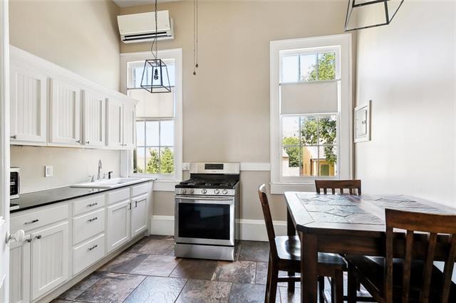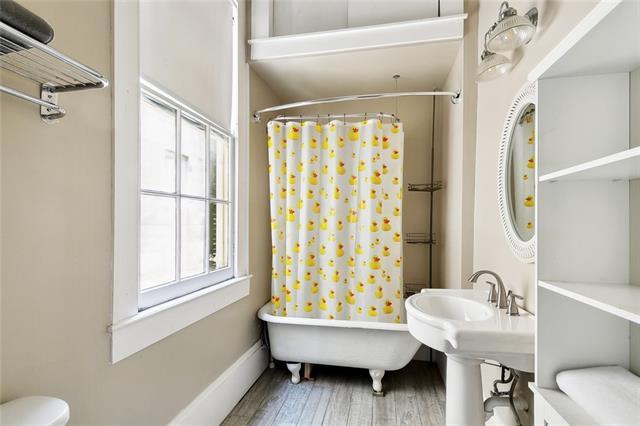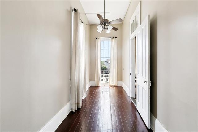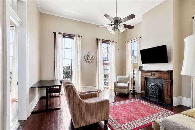 Charming French Quarter Apartment with Balcony Overlooking Dauphine Street + Parking! Welcome to your pied-Ã -terre in the heart of the French Quarter. Enter through a grand foyer and ascend a graceful staircase to this elegant upper-floor apartment. The spacious living area features soaring ceilings, abundant natural light from floor-to-ceiling windows, and access to a private balcony with views of historic Dauphine St. Enjoy beautiful architectural details throughout, including original wood floors, crown molding, and decorative brick fireplaces. The bright and airy layout is complemented by large windows on all sides, creating a warm and inviting atmosphere. The full-size kitchen offers ample space for a small dining table. There is an additional bonus room which could be a parlor, office, den, studio or more. Residents share access to a lush, oversized courtyard with large trees, for relaxing in the sun or shade. Apartment is offered partially furnished. Gated, assigned parking! Shared laundry on site. Water is included; tenant pays all other utilities. Pets may be considered with a non-refundable pet fee.