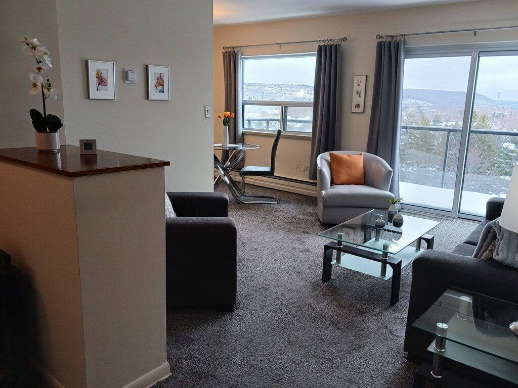 821 DOUGLAS STREET NORTH BAY ON P1B 5P3 $2100.00 April 1st - Two Bedroom Apt w Balcony – Secure Building w Elevator Completely smoke free. Bright living room with patio doors opening to a large east facing balcony. Full four-piece bathroom with a tub/shower. Heat is included, but hydro is extra (about $50 per month). Includes fridge and stove. Plenty of closet space. On site coin-op laundry. Onsite parking available ($25 per month). Internet options for Cogeco or Bell or BellFIBE(not included). Clean and well-maintained premises. Quiet and respectful environment. Smoke free. No pets. For further info or a viewing call or text/email Marianne