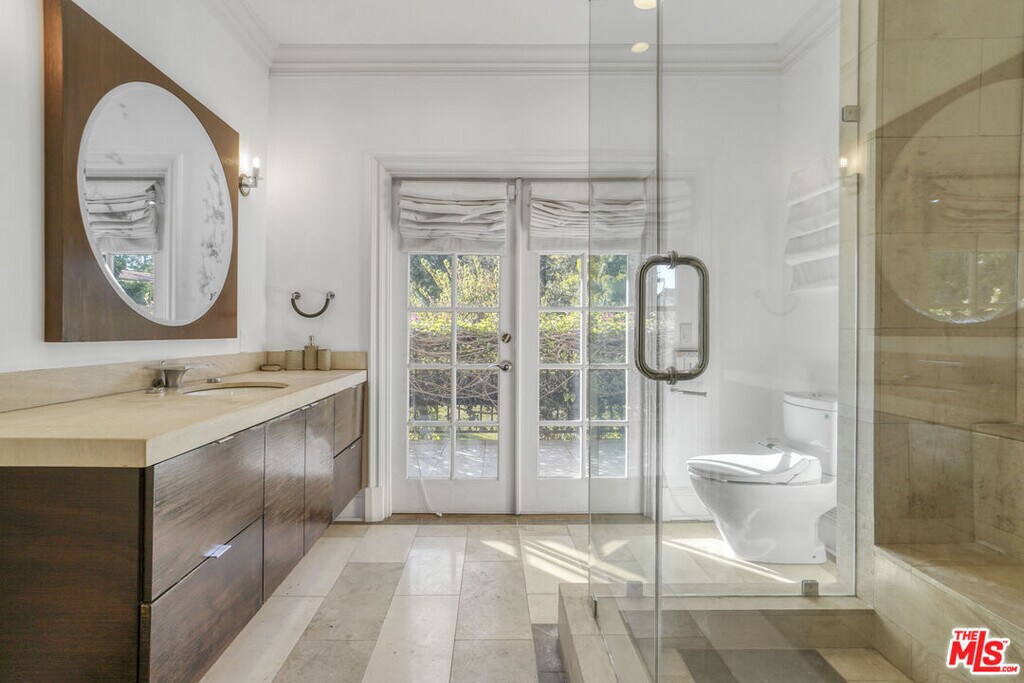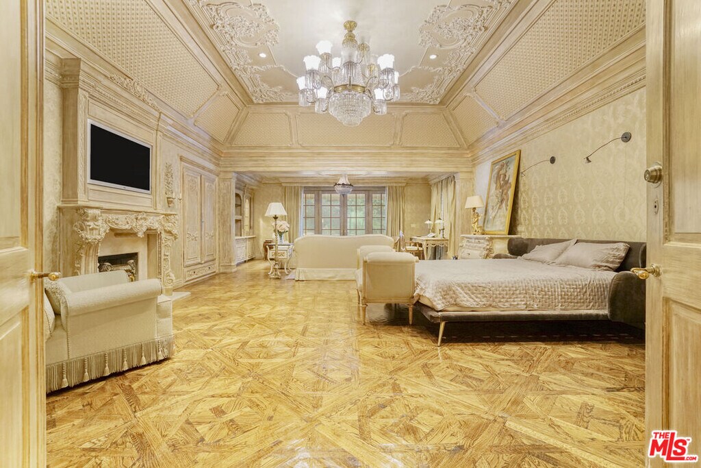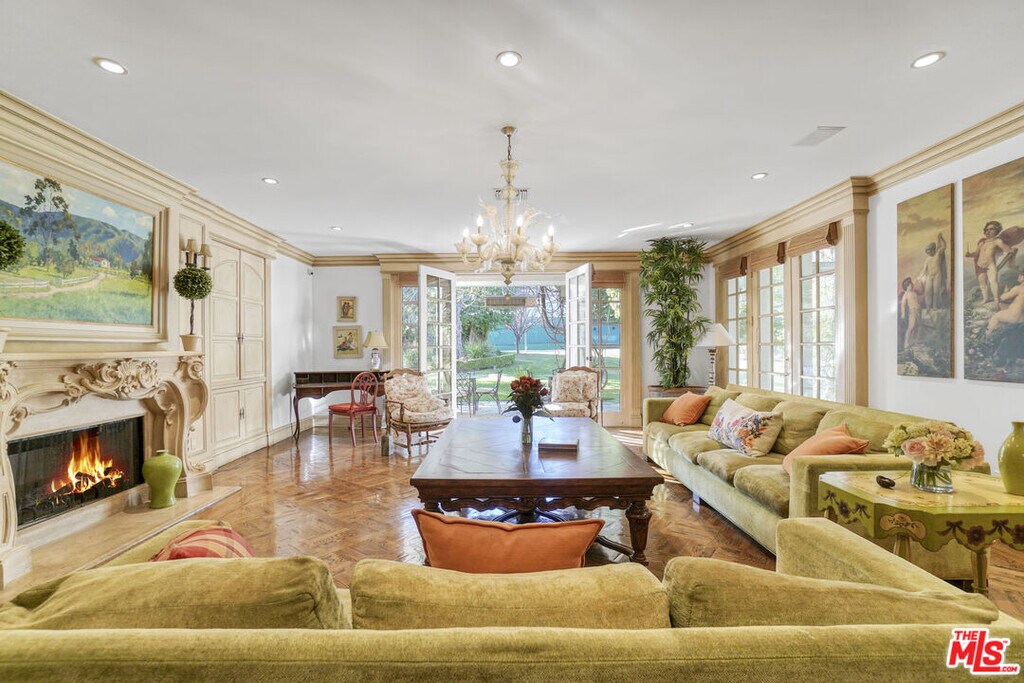 Classic Beverly Hills Traditional sitting on close to an acre of land. Prestigious 800 block of the Beverly Hills Flats. Private gated estate with resort style amenities. The backyard features, park-like grounds including a pool, spa, tennis court, BBQ, fireplace, etc. Entertainers dream, open floor plan, which features 6 bedrooms all en-suite. Oversize primary suite on ground level with 2 bathrooms and walk-in closets. Chef's kitchen with Viking appliances, double island, and separate breakfast room. Elegant spacious dining room, large living room with bar area, family room, and office/library. Staff quarter downstairs off the kitchen area. Additional 4 large ensuite bedrooms upstairs. MLS# 25613029