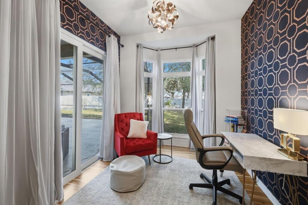 **AVAILABLE MID FEBRUARY ** Stunning 4-bedroom, 3-bath home plus a den, located in a desirable gated community West Meadows with top-notch amenities, offering all the bells and whistles with high-end upgrades throughout. This beautiful home features a formal dining room, formal living room, and a gourmet, fully upgraded kitchen with luxury stainless steel appliances, custom backsplash, marble countertops, breakfast bar, and a coffee station with a wine fridge. The spacious family room and breakfast area provide the perfect setting for both everyday living and entertaining. The split floor plan offers excellent privacy. The left wing of the home includes a den currently used as a home gym and a massive primary suite with a gorgeous flex space ideal for a home office or sitting area, ensuite bathroom, and a large walk-in closet. The primary bedroom looks like it was taken straight out of a magazine!! On the right side of the home, just off the family room, are two bedrooms that share a Jack-and-Jill bathroom, along with an additional spacious bedroom and a third full bathroom. Additional features include a separate laundry room with washer and dryer included and a spacious 3-car garage providing ample parking and storage. Outdoor living is just as impressive, featuring a covered lanai and back porch with plenty of shade and beautiful outdoor tile flooring, perfect for relaxing or hosting gatherings. The fully fenced backyard is ideal for kids and pets to enjoy.