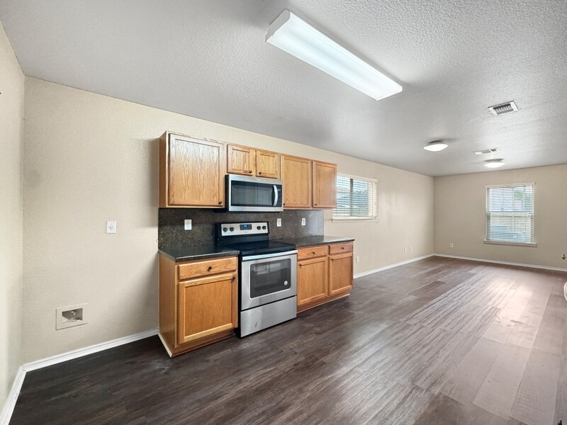 Move in Ready! Deposit-Free Living w/ Obligo!! Located just minutes from Randolph AFB, this spacious 2-story home offers an open floor plan, two living areas, and a large kitchen with ample cabinet space. The oversized primary suite features a sitting area/office, a roomy bath with a tub/shower combo, and a walk-in closet. Additional highlights include an eat-in kitchen, separate dining area, sprinkler system, and privacy fence. Conveniently situated near Super Walmart and a variety of dining options—everything you need is right at your doorstep! -- All T2M Real Estate residents are enrolled in the Resident Benefits Package (RBP) $55.95/month offering a smarter, easier renting experience with built-in protection/insurance and perks. --