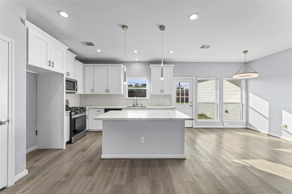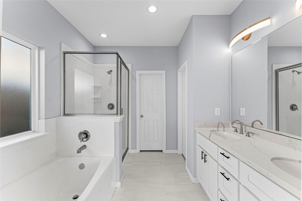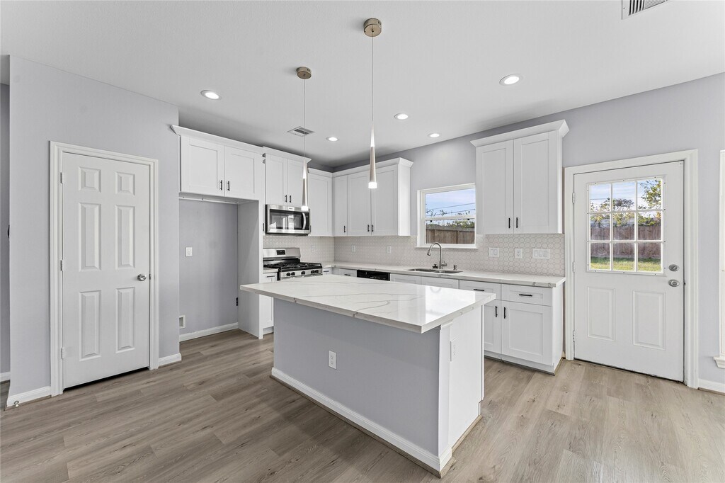 Welcome to this outstanding modern home! The property features a wide driveway and a lush front yard that provides immediate curb appeal. Step inside to a spacious,open-concept living area that flows seamlessly into the gourmet kitchen. The kitchen is a true centerpiece,boasting a huge island countertop,pristine white cabinets,and sleek stainless steel appliances. Adjacent is the bright dining area,illuminated by a modern chandelier and natural light,offering easy access to the backyard. The downstairs Master's Bedroom is a private retreat with soft carpet and wide windows,complemented by an en suite bathroom featuring a separate tub and shower,dual vanity,and a large walk-in closet. Upstairs,plush carpet leads to a huge Game Room and three additional spacious bedrooms,providing ample space for everyone. The outdoor area is perfect for enjoyment with a huge,fenced backyard. This modern home offers comfort,convenience,and style for an ideal lease lifestyle. MLS# 19108688