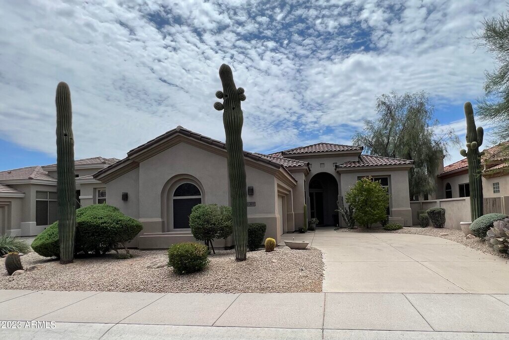 Elegant Edmunds La Jolla Model 2 Bedrooms plus Den in Grayhawk Talon Retreat,Scottsdale. Grand great room,custom bookcases,fireplace,high ceilings. Spacious kitchen,corian countertops,island,walk-in pantry. Backyard: fruit trees,built-in BBQ. Access to pool,spa,tennis; near Grayhawk golf course. Walk paths,parks,dining. Close to Scottsdale Healthcare Thompson Peak,101 Freeway. Upgrades: 2 AC units (Jul/23),new primary bedroom carpet,NEW kitchen appliances. Non-smoking. Granite in primary Bathroom. Exceptional Scottsdale living.