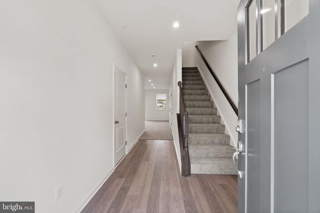 Discover upscale living in this energy-efficient Beazer Homes row home with 2059 square feet, 3 bedrooms, 2 full baths, and 2 half baths built in 2024 and now available for rent in the Willows. Step into the modern, updated interior featuring large windows and polished hardwood floors throughout. The entry level welcomes you into the foyer with garage access. Continue down the hallway to discover a spacious recreation room with a powder room, ample closet space for storage, and access to the backyard. The open-concept main level features an expansive living and dining area, accented by a modern electric fireplace and a convenient half bathroom. The space flows seamlessly into the bright eat-in kitchen, which offers quartz countertops, 42 maple cabinets, a breakfast bar, a center island with seating, a subway tile backsplash, stainless steel appliances including a gas range, and a cozy breakfast nook with a pantry and direct access to the deck featuring a privacy wall that overlooks a spacious, open, and flat green space, creating a perfect setting for indoor-outdoor living. The upper level offers a convenient hallway closet with laundry facilities, 2 full bathrooms, and 3 bedrooms adorned with plush carpeting and generous closet space. The spacious primary suite features a walk-in closet and an en suite bathroom with dual sinks. Additional property highlights include the convenience of an in-unit washer and dryer, a 1-car garage with space for two more vehicles, and pet-friendly policies on a case-by-case basis. The Willows community builds Energy Series READY homes, which are certified by the U.S. Department of Energy as DOE Zero Energy Ready Home™. These homes are ENERGY STAR® certified, Indoor airPLUS qualified, and designed to be 40-50% more efficient than typical new homes. In addition to its energy-efficient design, The Willows offers prime convenience with quick access to major commuter routes like I-97, Route 100, Route 32, and I-695. Residents can enjoy nearby scenic trails, and meet everyday shopping needs with Target and Giant less than five minutes away."