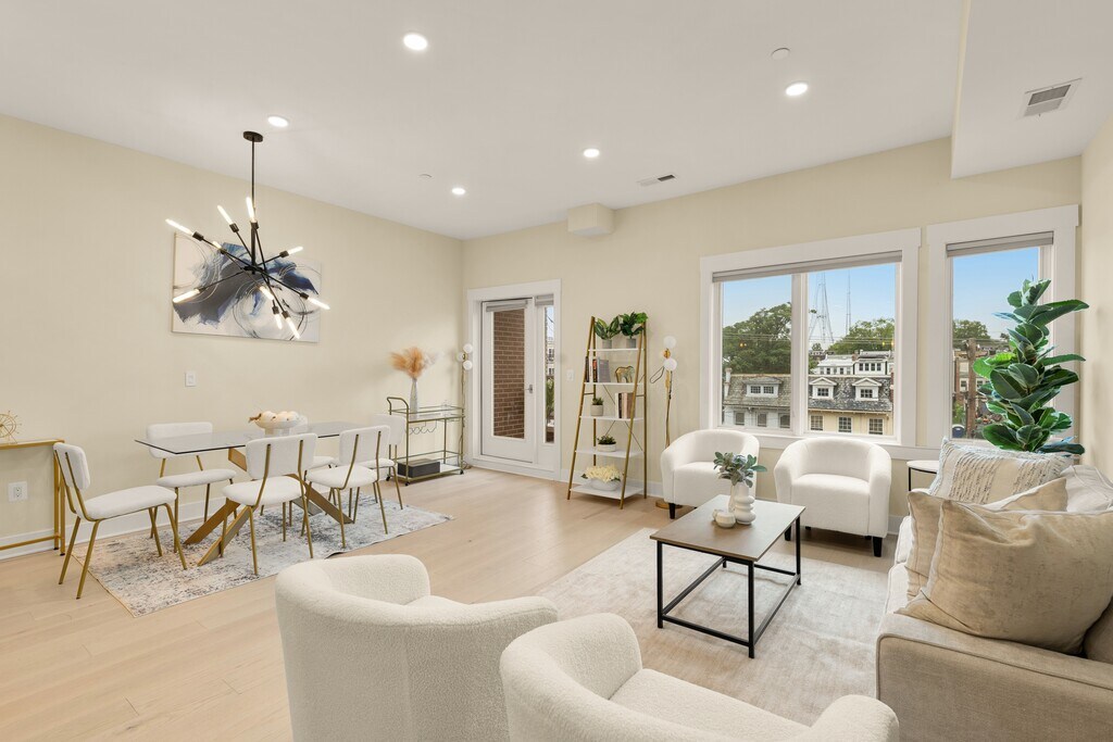 Gorgeous Two-Bedroom Penthouse Unit with Rooftop Terrace and Parking This stunning penthouse condo features oak hardwood flooring throughout, tall ceilings, large windows for natural light, updated appliances, a main floor balcony and upper level roof terrace, as well as one space of off-street parking. In addition to the great features inside, this condo also sits along the business district on Kennedy Street NW with plenty of great restaurants, shops, and nightlife. The open concept main level offers a large chef's kitchen with a massive island countertop with room for four stools, white quartz countertops and cabinetry that offer a perfect contrast to the flooring, and a large pantry. Just beyond is a spacious living area with enough room for separate living and dining spaces, and a walkout balcony that overlooks Kennedy Street. Head upstairs to find a sizable junior bedroom, a large full bathroom with shower/tub combo, a stacked washer and dryer, and a hallway that leads out to an impressive rooftop terrace. The impressive primary suite gets plenty of natural light through a massive window and glass door that also leads out to the rooftop terrace. The suite also includes an ensuite bathroom with a glass walled shower. This location on Kennedy Street allows easy access to some of the neighborhood's favorite restaurants and shops such as Brightwood Pizza & Bottle (ANXO Cidery), La Coop Coffee, Poplar, and Shellfish Market. For groceries, Walmart Supercenter (0.5 mi) and Safeway (1.0 mi) are both within a mile, with another Walmart Supercenter (1.4 mi) and Giant Grocery (1.9 mi) just beyond. Getting around by car is a breeze with the nearby thoroughfares of Georgia Avenue, New Hampshire Avenue, North Capitol Street. Fort Totten Metro Station (1.4 mi) and Takoma Metro Station (1.6 mi) and several Metrobus lines allow easy access to the rest of DC and beyond. There is an application fee of $50 per applicant. The minimum credit score requirement for consideration is 670 (per DC statute, the approval decision is not based solely on the credit score). A gross household income of at least three-times (3x) the monthly rent is preferred (2.5x to qualify). The minimum lease term is for one (1) year (15+ months preferred). The security deposit is equal to one month's full rent. Tenants are responsible the electricity utility (Pepco) and cable/internet (if desired). Pets will be considered on a case-by-case basis with a one-time non-refundable pet fee of $300. One space of private off-street parking is available for an additional $150/month. Tenants are responsible for coordinating their moves with the condo association/building management in advance of their move as required. Smoking is prohibited. This unit will be move-in ready by early-to-mid December. Please do not hesitate to set up a tour and apply today! This rental unit is professionally managed by Scout Properties, DC's trustworthy property management firm, located in the Brookland neighborhood of Washington, DC. For more information visit: Scout Properties follows Equal Opportunity Housing guidelines, and Federal/ DC laws, which include voucher assistance and "source of income" protected classes. Lease Terms: - There is an application fee of $50 per applicant. - The minimum credit score requirement for consideration is 670 (per DC statute, the approval decision is not based solely on the credit score). - A gross household income of at least three-times (3x) the monthly rent is preferred (2.5x to qualify). - The minimum lease term is for one (1) year (15+ months preferred). - The security deposit is equal to one month's full rent. - Tenants are responsible the electricity utility (Pepco) and cable/internet (if desired). - Pets will be considered on a case-by-case basis with a one-time non-refundable pet fee of $300. - One space of private off-street parking is available for an additional $150/month. - Tenants are responsible for abiding by all of the rules set forth by the 822 Kennedy Street Condominium Association. - Tenants are responsible for coordinating their moves with the condo association/building management in advance of their move as required. - Smoking is prohibited. - This unit will be move-in ready by early-to-mid December. Please do not hesitate to set up a tour and apply today! 822 Kennedy Street Condominium